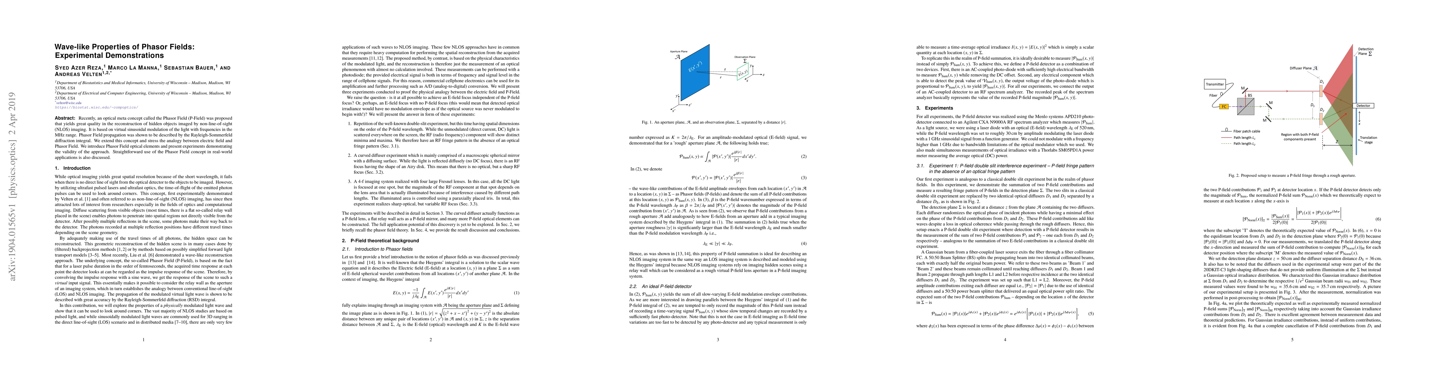 This research introduces Phasor Fields (P-Fields), a novel optical concept enabling high-quality NLOS imaging via sinusoidal light modulation in MHz range. Experiments validate P-Field propagation described by Rayleigh-Sommerfeld diffraction, demonstrating P-Field optical elements' potential for real-world applications.