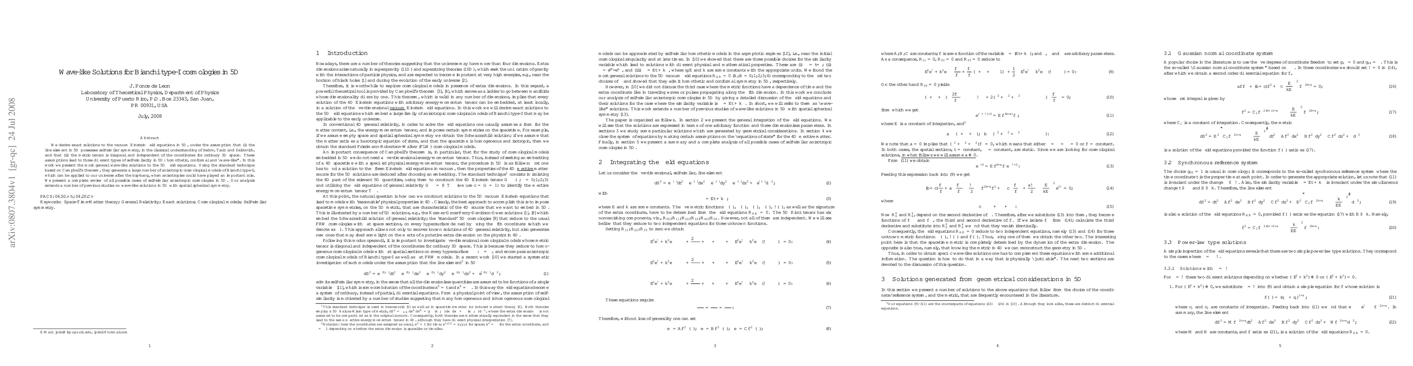We derive exact solutions to the vacuum Einstein field equations in 5D, under the assumption that (i) the line element in 5D possesses self-similar symmetry, in the classical understanding of Sedov, Taub and Zeldovich, and that (ii) the metric tensor is diagonal and independent of the coordinates for ordinary 3D space. These assumptions lead to three different types of self-similarity in 5D: homothetic, conformal and "wave-like". In this work we present the most general wave-like solutions to the 5D field equations. Using the standard technique based on Campbell's theorem, they generate a large number of anisotropic cosmological models of Bianchi type-I, which can be applied to our universe after the big-bang, when anisotropies could have played an important role. We present a complete review of all possible cases of self-similar anisotropic cosmologies in 5D. Our analysis extends a number of previous studies on wave-like solutions in 5D with spatial spherical symmetry.