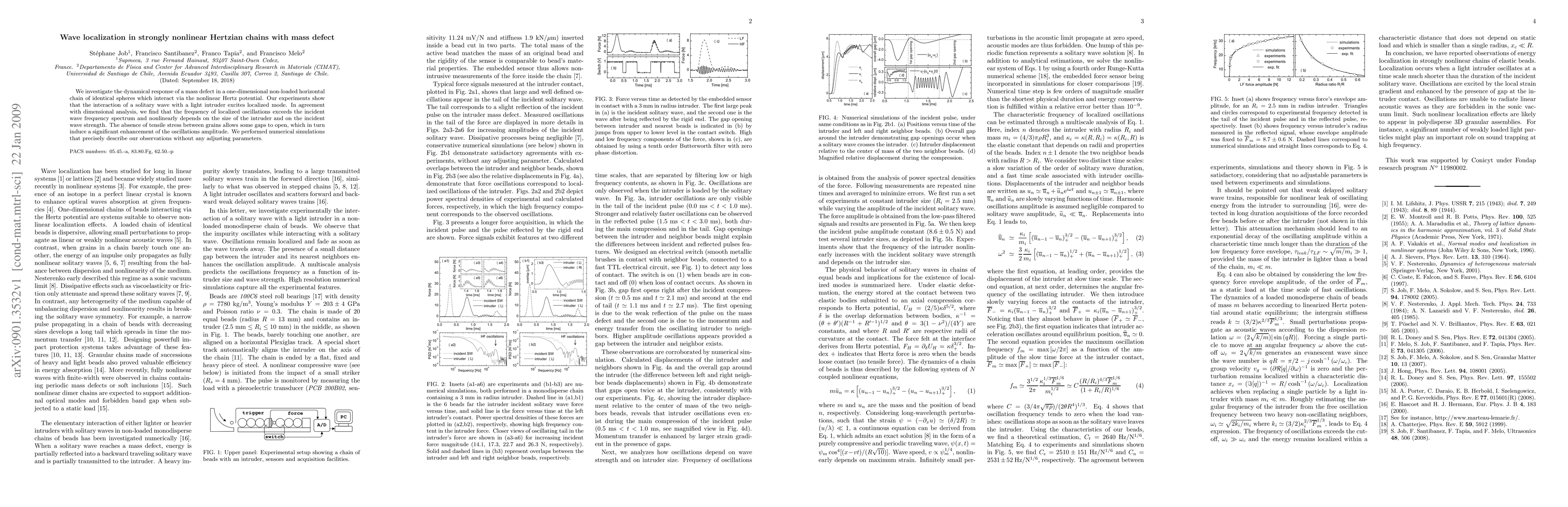 Researchers study how a mass defect in a chain of spheres interacts with an incoming wave, finding localized oscillations that exceed the incident frequency and amplify with gap openings.