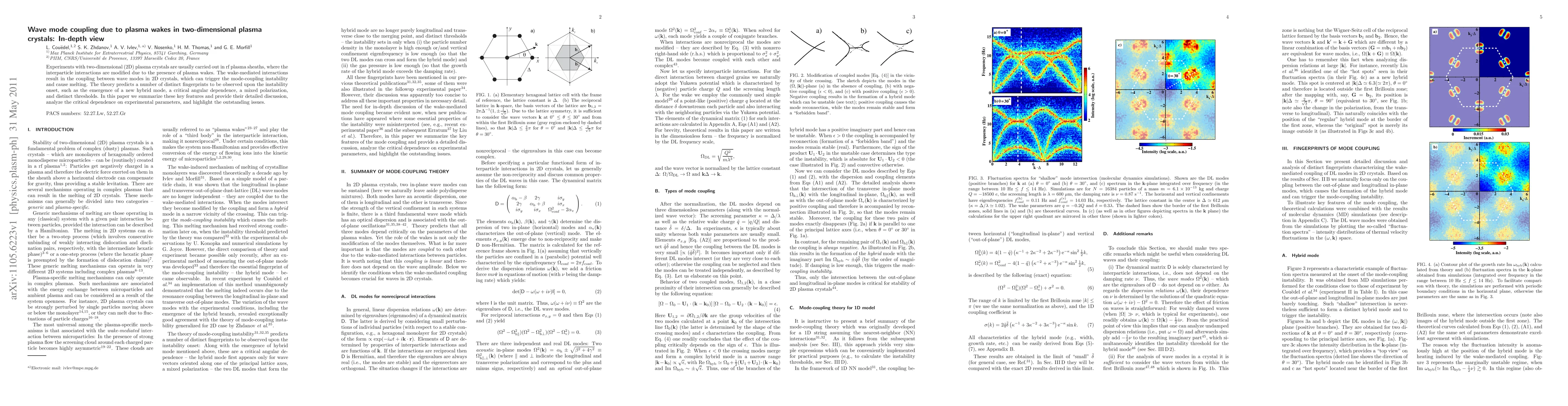 This paper investigates wave mode coupling in two-dimensional plasma crystals driven by plasma wakes, revealing the coupling's role in triggering mode-coupling instability and crystal melting. It discusses theoretical predictions and experimental observations of distinct instability fingerprints, analyzing their dependence on experimental parameters and identifying unresolved issues.