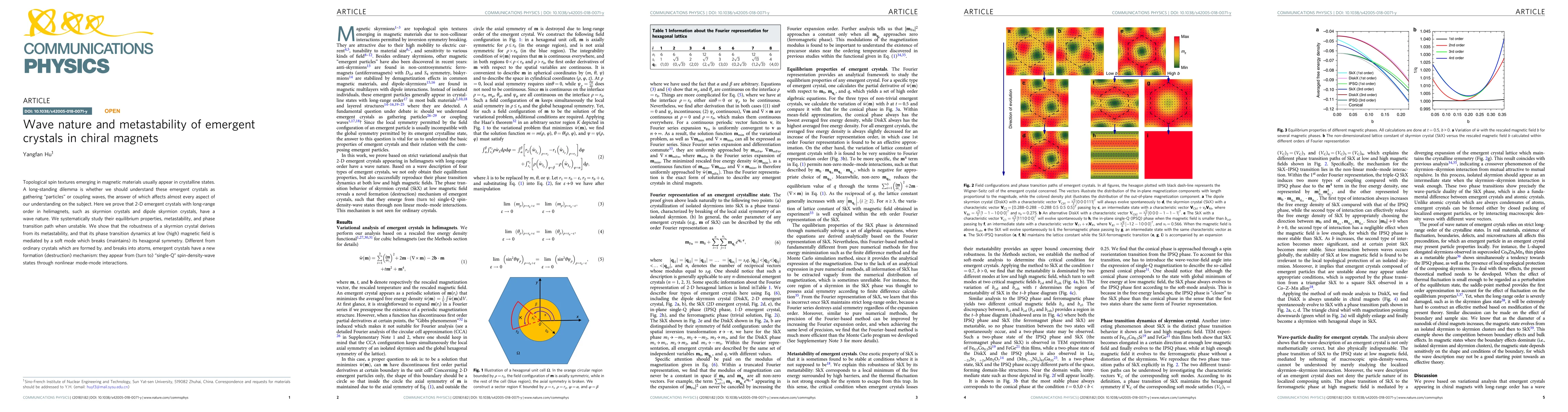 This paper demonstrates that 2-D emergent crystals in chiral magnets, like skyrmion crystals, exhibit wave nature rather than particle-like behavior. It explores their metastability and phase transition dynamics, revealing that their robustness stems from metastability and their phase transitions are mediated by soft modes affecting their symmetry.