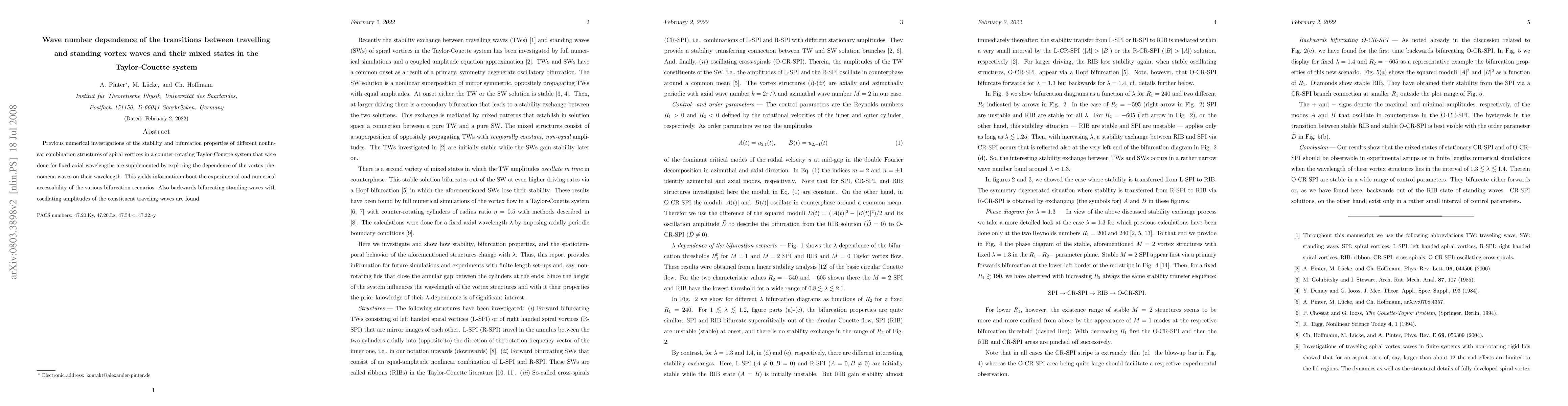 This paper investigates the wave-number dependence of vortex transitions in a Taylor-Couette system, revealing bifurcation scenarios' accessibility and identifying backward bifurcations in standing waves with oscillating amplitudes.