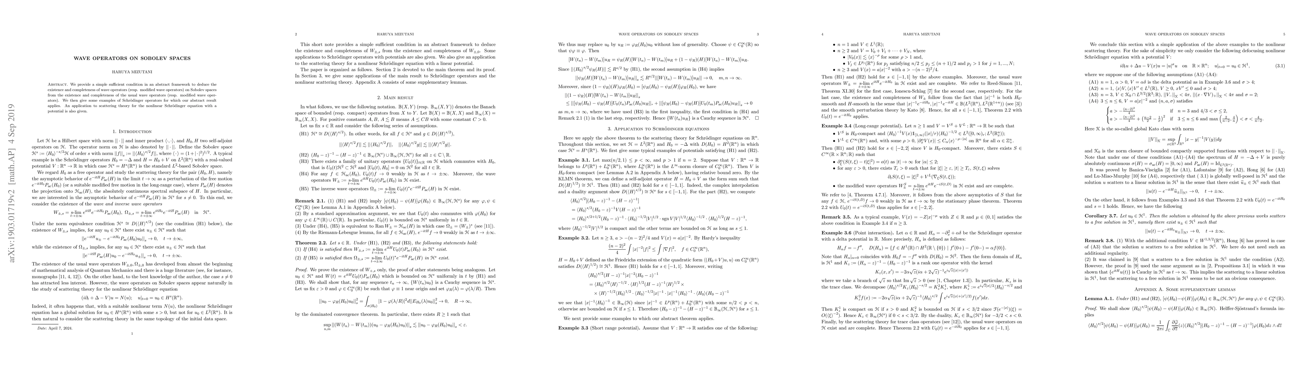 We provide a simple sufficient condition in an abstract framework to deduce the existence and completeness of wave operators (resp. modified wave operators) on Sobolev spaces from the existence and completeness of the usual wave operators (resp. modified wave operators). We then give some examples of Schr\"odinger operators to which our abstract result applies. An application to scattering theory for the nonlinear Schr\"odinger equation with a potential is also given.