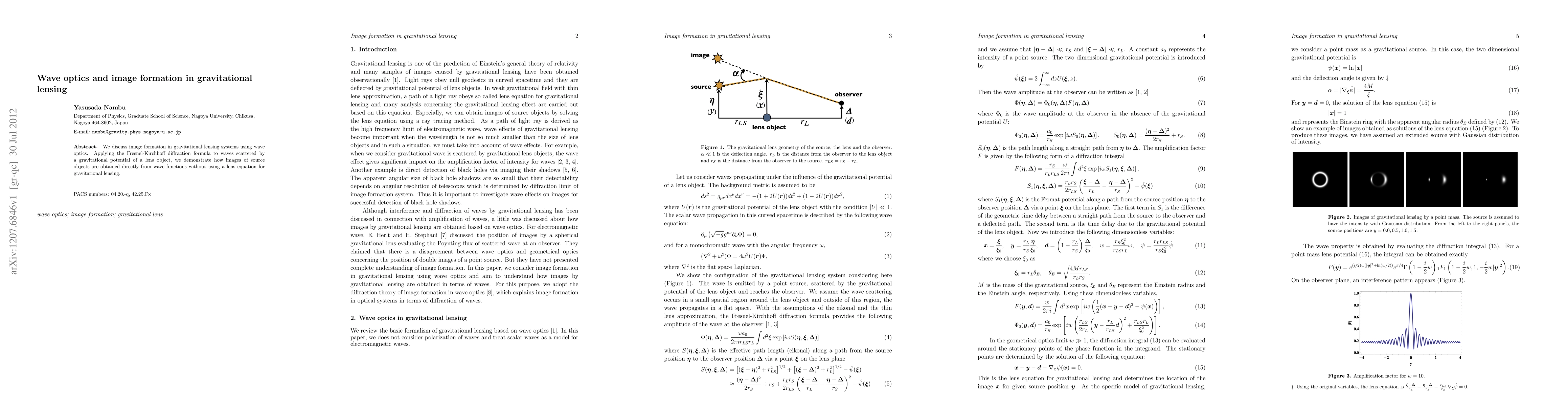 This paper explores image formation in gravitational lensing through wave optics, applying the Fresnel-Kirchhoff diffraction formula to derive images from wave functions, bypassing traditional lens equations.