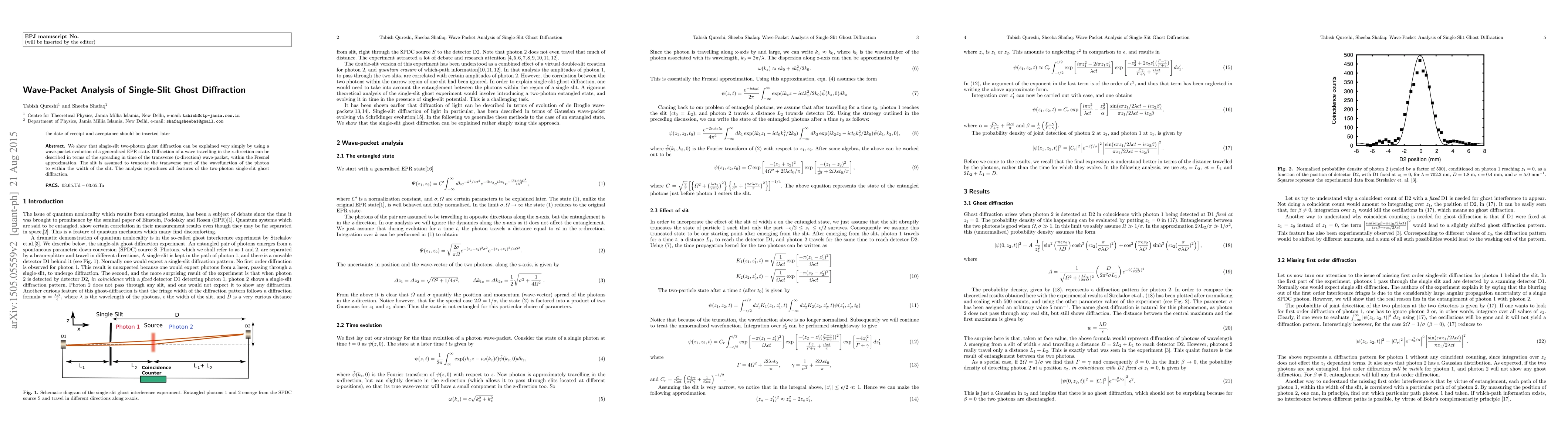 This paper demonstrates that single-slit two-photon ghost diffraction can be explained through wave-packet evolution of a generalised EPR state, showing that diffraction is due to the transverse wave-packet spreading within the Fresnel approximation. The analysis accurately reproduces all observed features of the phenomenon.