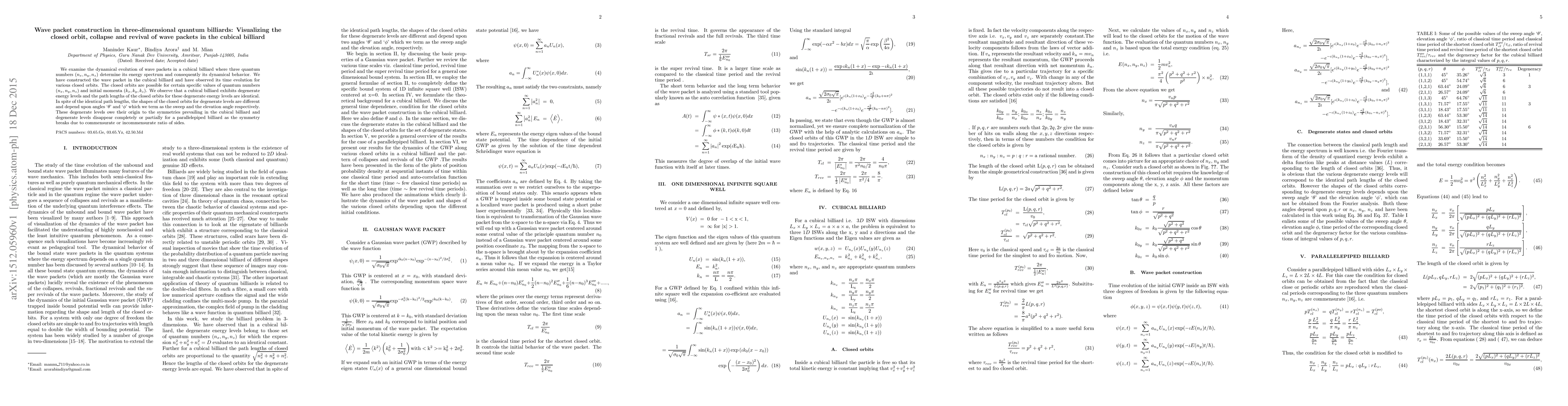 Researchers studied wave packet behavior in a 3D cubical billiard, finding degenerate energy levels with distinct closed orbit shapes depending on symmetry angles, and implications for understanding quantum systems.