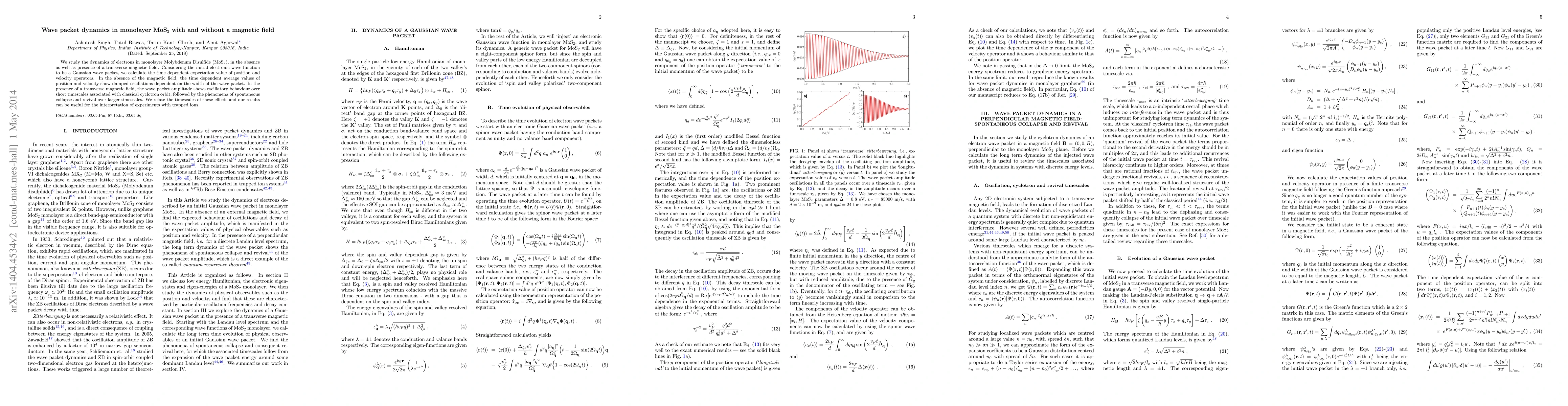 This paper investigates the wave packet dynamics of electrons in monolayer MoS$_2$ under both magnetic and non-magnetic conditions, revealing damped oscillations without a field and oscillatory behavior followed by collapse and revival with a magnetic field, providing insights for trapped ion experiments.