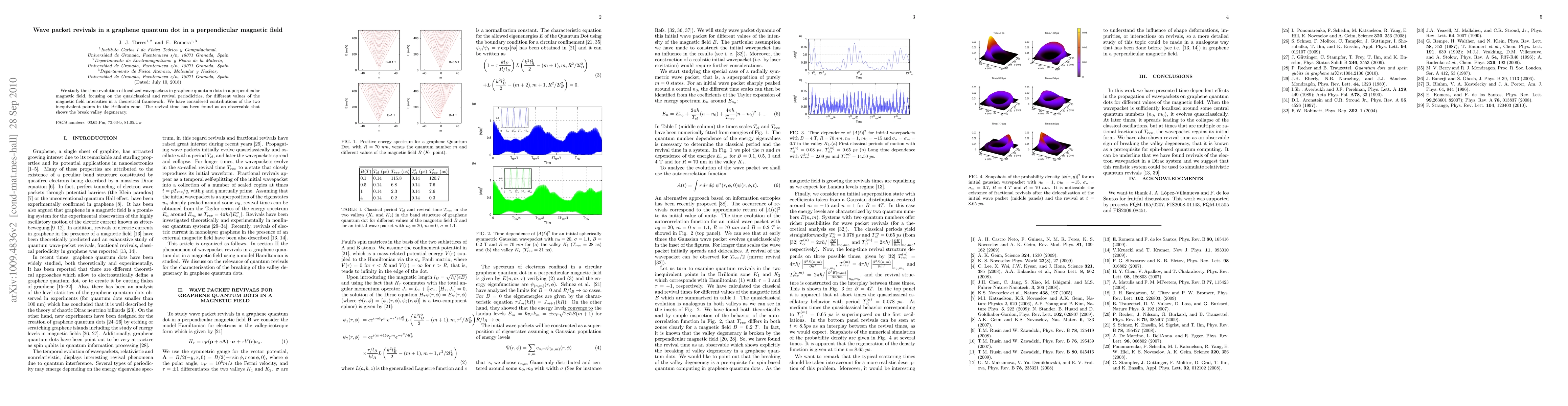Researchers studied wave packet behavior in graphene quantum dots under a magnetic field, finding that revival times can reveal valley degeneracy, and providing insights into the quasiclassical periodicities of localized wavepackets.