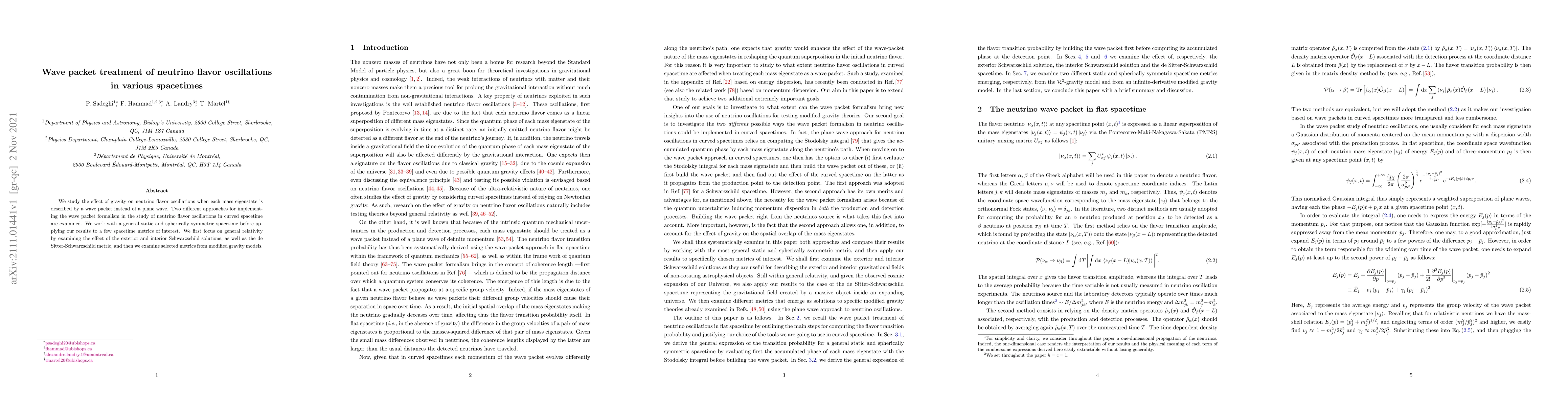 This paper investigates the impact of gravity on neutrino flavor oscillations using wave packet formalism in various curved spacetimes, comparing results from general relativity and selected modified gravity models. It examines the Schwarzschild and de Sitter-Schwarzschild metrics, alongside metrics from alternative gravity theories.