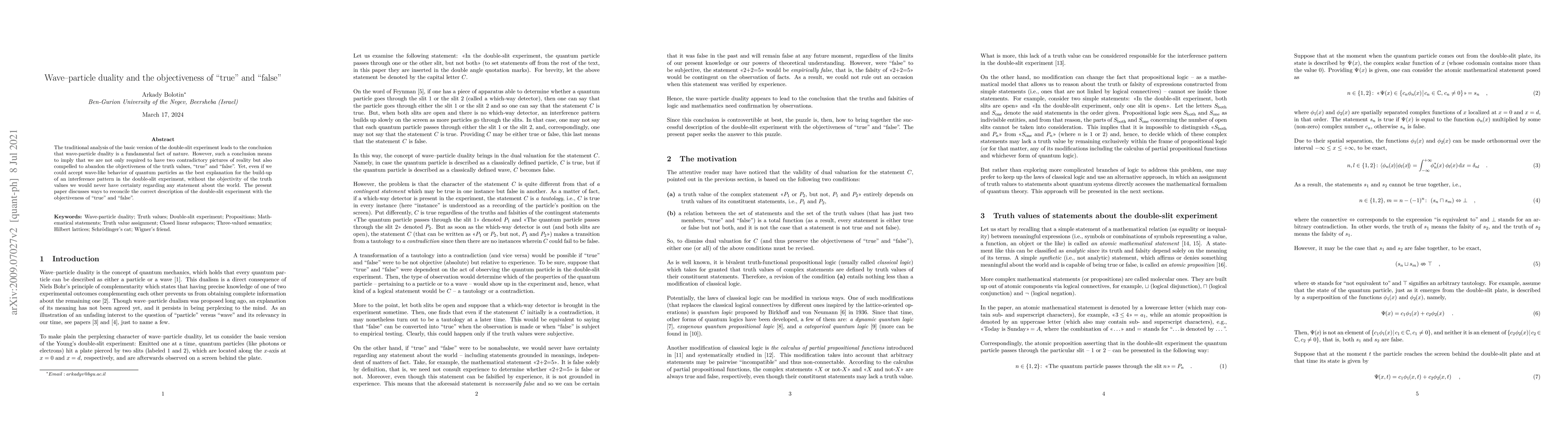 This paper explores how to reconcile wave-particle duality in quantum experiments with the objectiveness of true and false statements, aiming to preserve certainty about the world's nature.