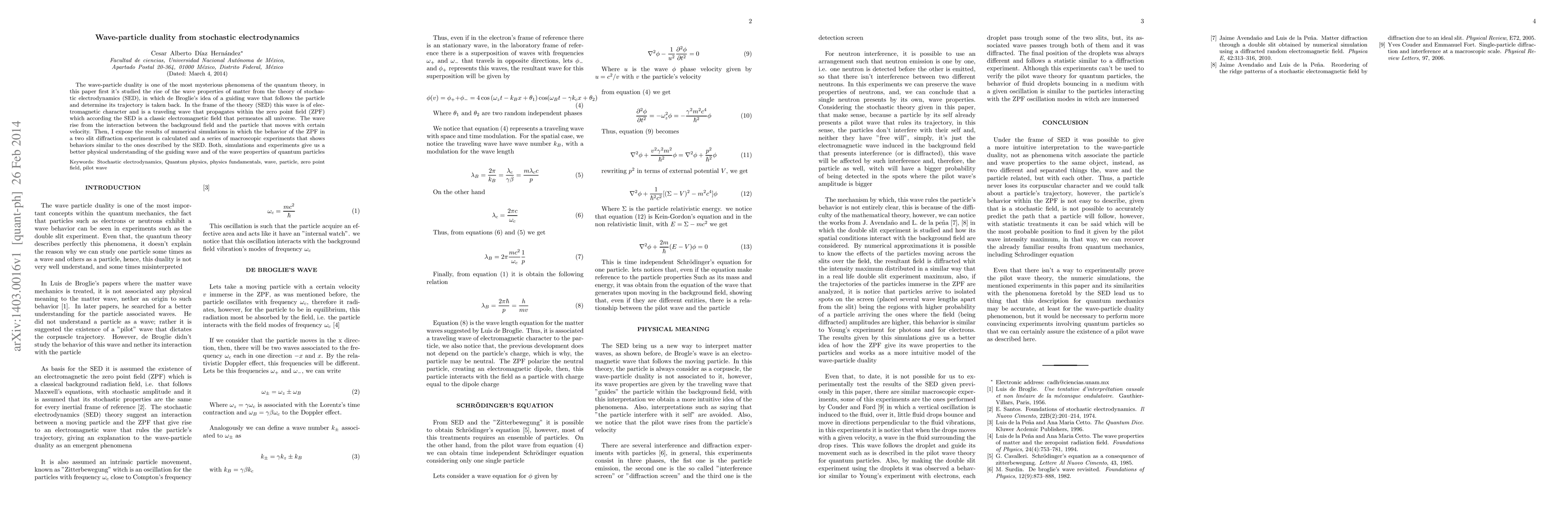 This paper explores wave-particle duality through stochastic electrodynamics, proposing that the wave properties of matter arise from interactions with the zero point field. Numerical simulations and macroscopic experiments demonstrate behaviors consistent with the theory, enhancing our understanding of the guiding wave concept.