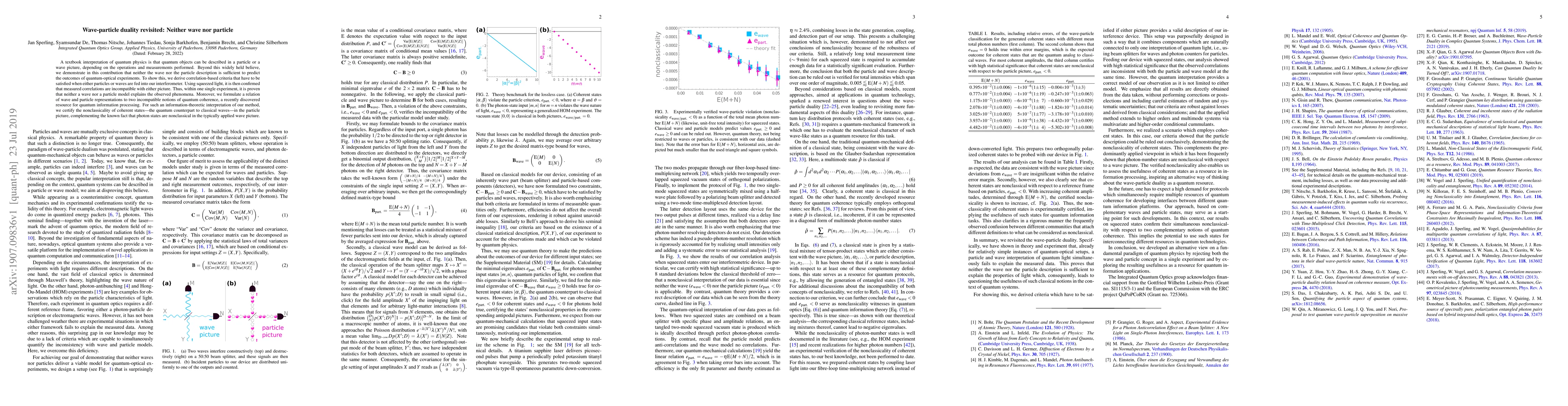 A textbook interpretation of quantum physics is that quantum objects can be described in a particle or a wave picture, depending on the operations and measurements performed. Beyond this widely held believe, we demonstrate in this contribution that neither the wave nor the particle description is sufficient to predict the outcomes of quantum-optical experiments. To show this, we derive correlation-based criteria that have to be satisfied when either particles or waves are fed into our interferometer. Using squeezed light, it is then confirmed that measured correlations are incompatible with either picture. Thus, within one single experiment, it is proven that neither a wave nor a particle model explains the observed phenomena. Moreover, we formulate a relation of wave and particle representations to two incompatible notions of quantum coherence, a recently discovered resource for quantum information processing.For such an information-theoretic interpretation of our method, we certify the nonclassicality of coherent states - the quantum counterpart to classical waves - in the particle picture, complementing the known fact that photon states are nonclassical in the typically applied wave picture.
