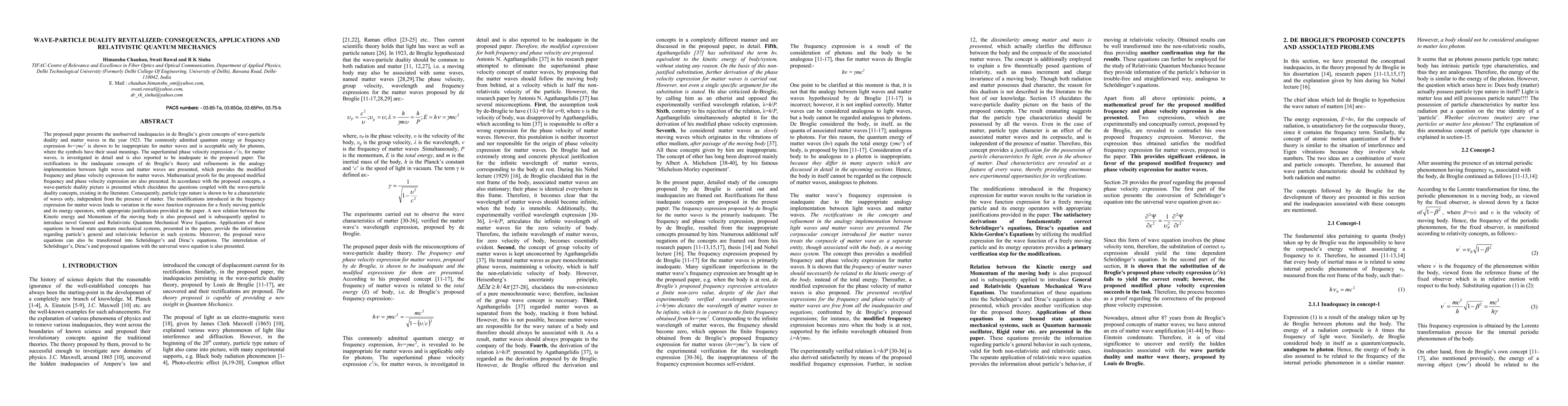 The proposed paper presents the unobserved inadequacies in de Broglie's concepts of wave-particle duality and matter waves in the year 1923. The commonly admitted quantum energy or frequency expression h{\nu}={\gamma}mc2 is shown to be inappropriate for matter waves and is acceptable only for photons. The superluminal phase velocity expression c2/\u{psion}, for matter waves, is investigated in detail and is also reported to be inadequate. The rectifications in the inadequate concepts of de Broglie's theory and refinements in the analogy implementation between light waves and matter waves are presented, which provides the modified frequency and phase velocity expression for matter waves. Mathematical proofs for the proposed modified frequency and phase velocity expression are also presented. In accordance with the proposed concepts, a wave-particle duality picture is presented which elucidates the questions coupled with the wave-particle duality, existing in the literature. Consequently, particle type nature is shown to be a characteristic of waves only, independent from the presence of matter. The modifications introduced in the frequency expression for matter waves leads to variation in the wave function expression for a freely moving particle and its energy operators, with appropriate justifications. A new relation between the Kinetic energy and Momentum of the moving body is proposed and is subsequently applied to introduce novel General and Relativistic Quantum Mechanical Wave Equations. Applications of these equations in bound state quantum mechanical systems provide the information regarding particle's general and relativistic behavior in such systems. Moreover, the proposed wave equations can also be transformed into Schr\"odinger's and Dirac's equations. The interrelation of Schr\"odinger's, Dirac's and proposed equations with the universal wave equation is also presented.
