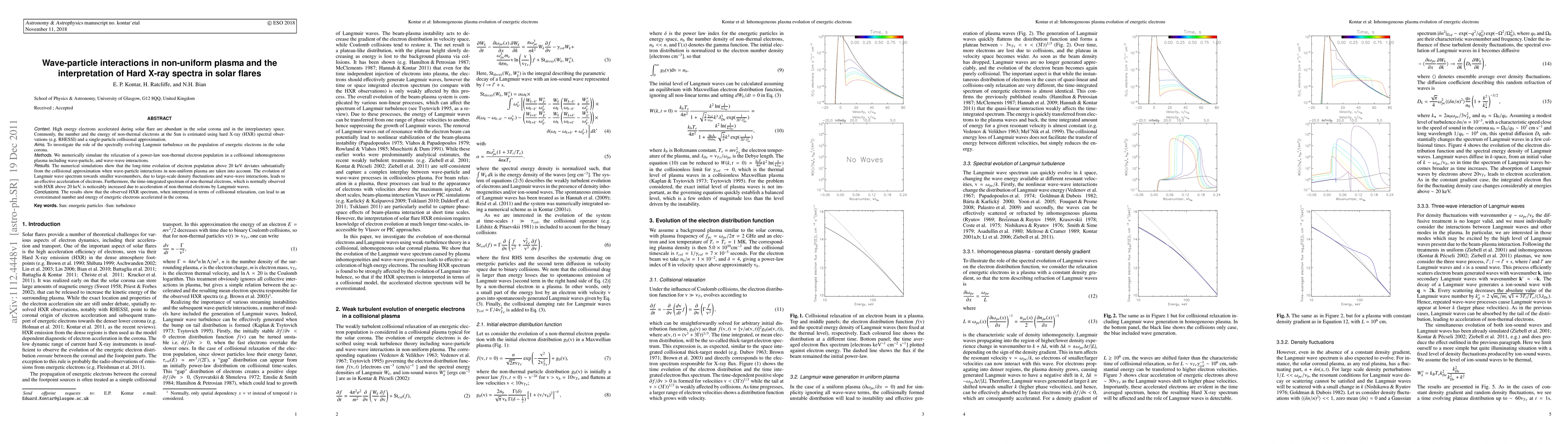 This paper investigates the impact of Langmuir turbulence on energetic electron populations in solar flares, finding that wave-particle interactions in non-uniform plasma significantly alter the hard X-ray spectrum compared to collisional relaxation models, potentially overestimating the number and energy of accelerated electrons.