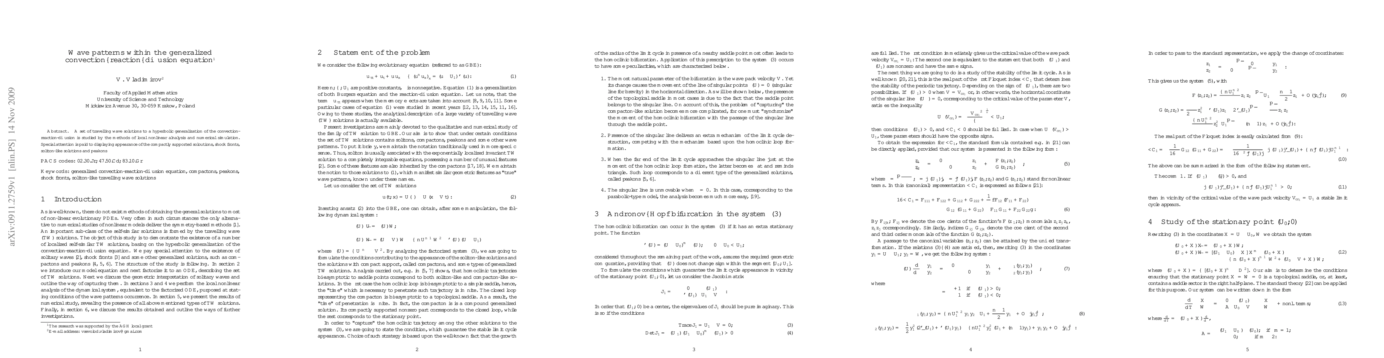 Summary: This paper investigates hyperbolic generalizations of the convection-reaction-diffusion equation, focusing on travelling wave solutions using local nonlinear analysis and numerical simulations, highlighting the emergence of compactly supported solutions, shock fronts, soliton-like solutions, and peakons.