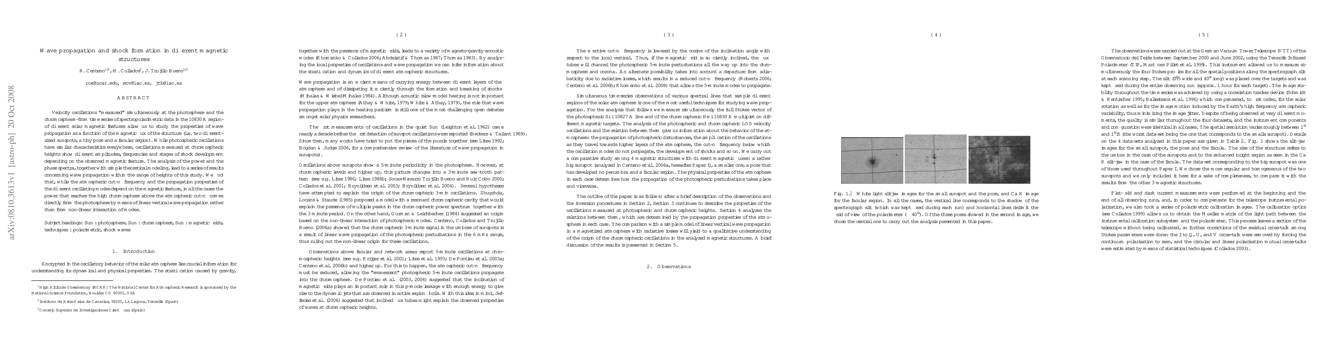 This paper investigates wave propagation and shock formation in various solar magnetic structures using spectropolarimetric data. It finds that while photospheric oscillations are uniform, chromospheric oscillations vary significantly with magnetic flux, indicating different shock development stages. The study concludes that linear vertical wave propagation from the photosphere is the primary source for high chromospheric power above the atmospheric cut-off frequency.