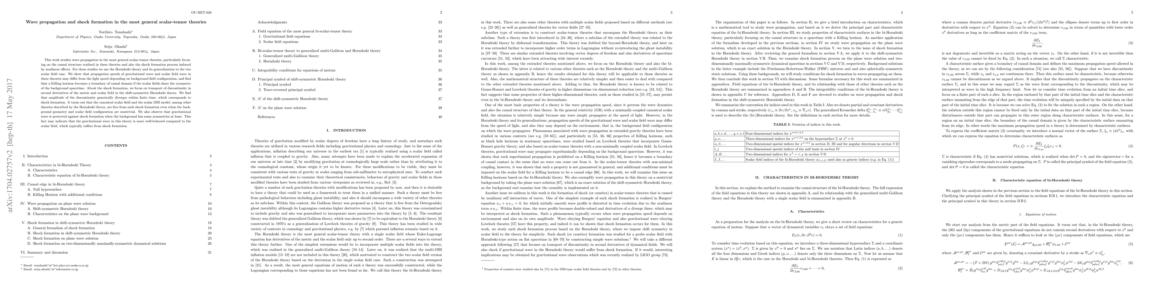 This work studies wave propagation in the most general scalar-tensor theories, particularly focusing on the causal structure realized in these theories and also the shock formation process induced by nonlinear effects. For these studies we use the Horndeski theory and its generalization to the two scalar field case. We show that propagation speeds of gravitational wave and scalar field wave in these theories may differ from the light speed depending on background field configuration, and find that a Killing horizon becomes a boundary of causal domain if the scalar fields share the symmetry of the background spacetime. About the shock formation, we focus on transport of discontinuity in second derivatives of the metric and scalar field in the shift-symmetric Horndeski theory. We find that amplitude of the discontinuity generically diverges within finite time, which corresponds to shock formation. It turns out that the canonical scalar field and the scalar DBI model, among other theories described by the Horndeski theory, are free from such shock formation even when the background geometry and scalar field configuration are nontrivial. We also observe that gravitational wave is protected against shock formation when the background has some symmetries at least. This fact may indicate that the gravitational wave in this theory is more well-behaved compared to the scalar field, which typically suffers from shock formation.
