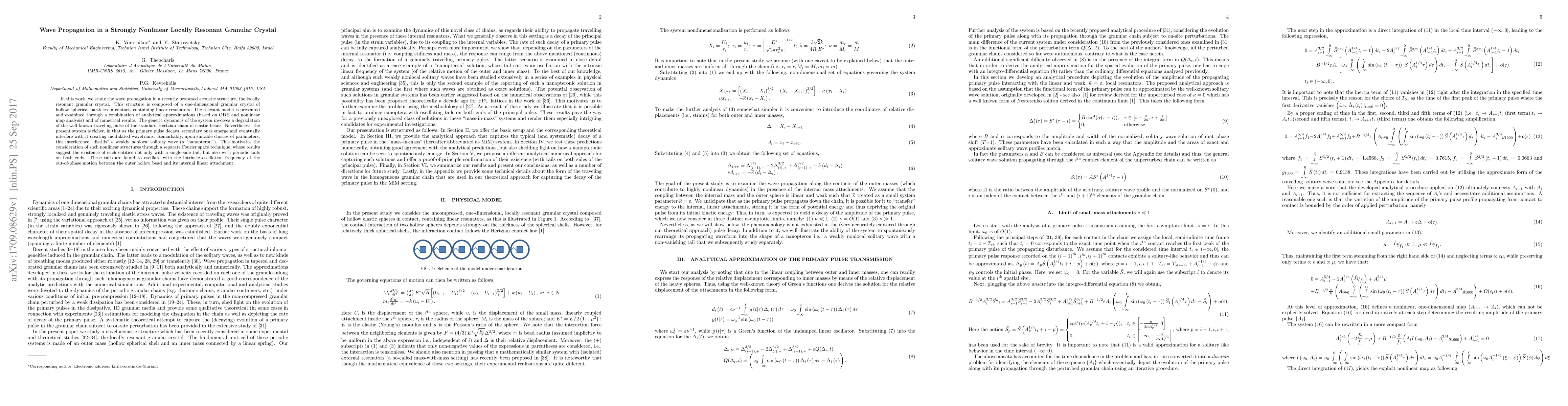 This paper investigates wave propagation in a locally resonant granular crystal composed of hollow spherical particles, revealing the emergence of modulated wavetrains and solitary waves termed "nanopterons." The study combines analytical and numerical methods to explore the complex dynamics and the potential for nonlocal solitary waves with periodic tails.