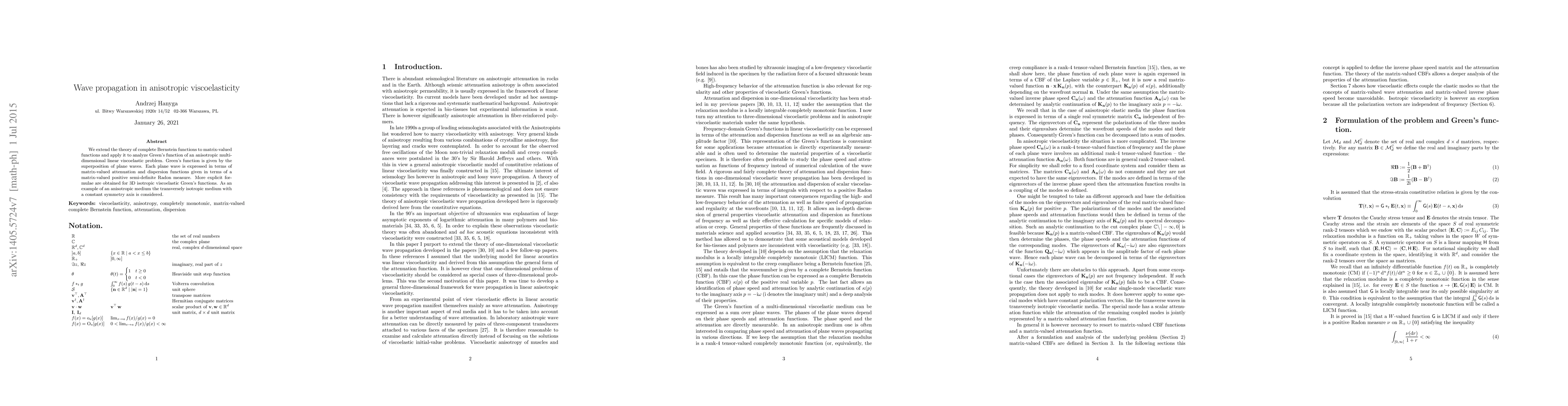 This paper extends Bernstein functions to matrix-valued forms to analyze the Green's function for anisotropic viscoelastic wave propagation, providing explicit 3D isotropic solutions and examining a transversely isotropic medium.