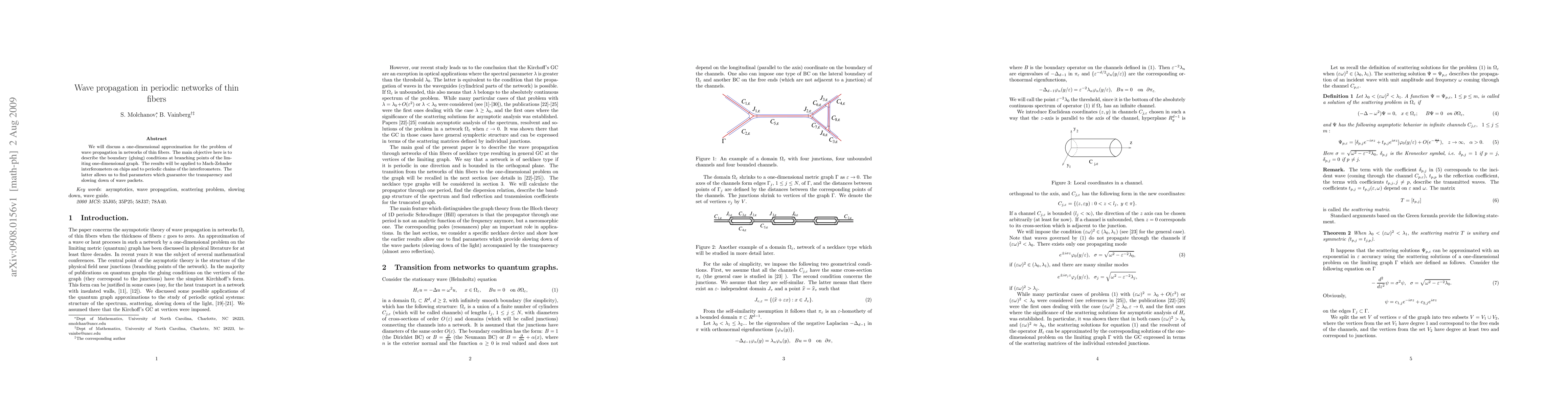 We will discuss a one-dimensional approximation for the problem of wave propagation in networks of thin fibers. The main objective here is to describe the boundary (gluing) conditions at branching points of the limiting one-dimensional graph. The results will be applied to Mach-Zehnder interferometers on chips and to periodic chains of the interferometers. The latter allows us to find parameters which guarantee the transparency and slowing down of wave packets.