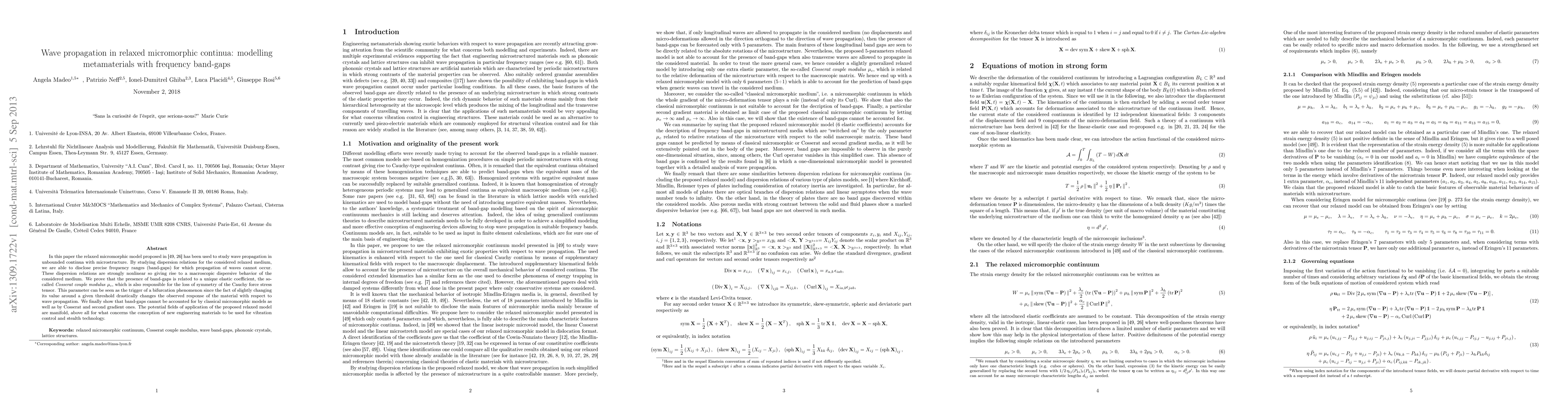 This paper utilizes the relaxed micromorphic model to study wave propagation in microstructured materials, identifying precise frequency ranges (band-gaps) where wave propagation is impossible. The presence of band-gaps is linked to the Cosserat couple modulus, which triggers a bifurcation phenomenon affecting wave response.