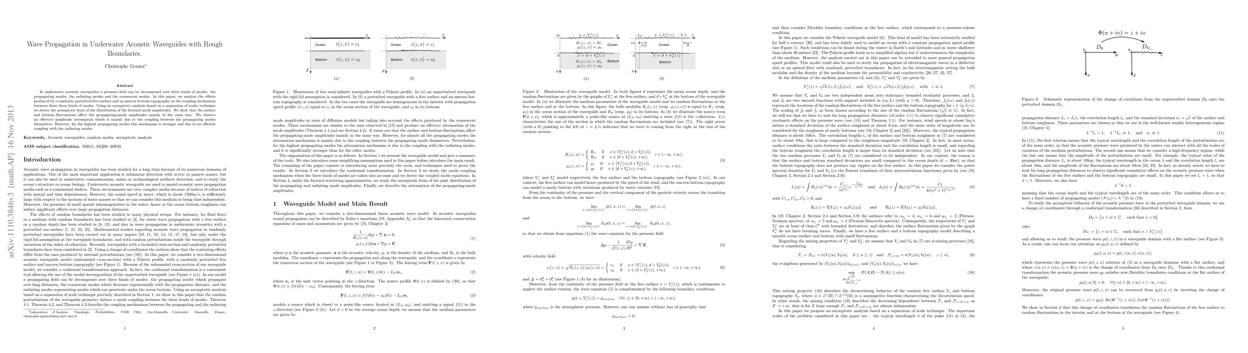 This paper investigates how rough boundaries influence wave propagation in underwater acoustic waveguides, focusing on the coupling between propagating, radiating, and evanescent modes. It finds that surface and bottom perturbations primarily attenuate propagating modes through self-coupling, with higher modes experiencing stronger attenuation due to coupling with radiating modes.