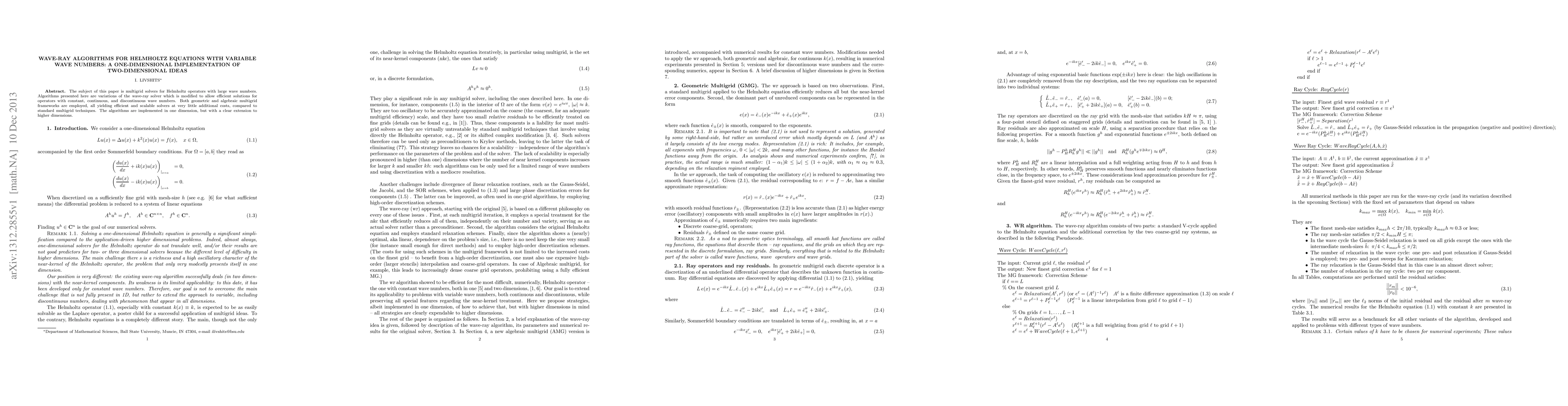 This paper presents wave-ray algorithms for solving Helmholtz equations with variable wave numbers, employing both geometric and algebraic frameworks for efficient multigrid solvers. The one-dimensional implementation showcases scalability and minimal additional costs compared to standard techniques, with potential for higher-dimensional extensions.