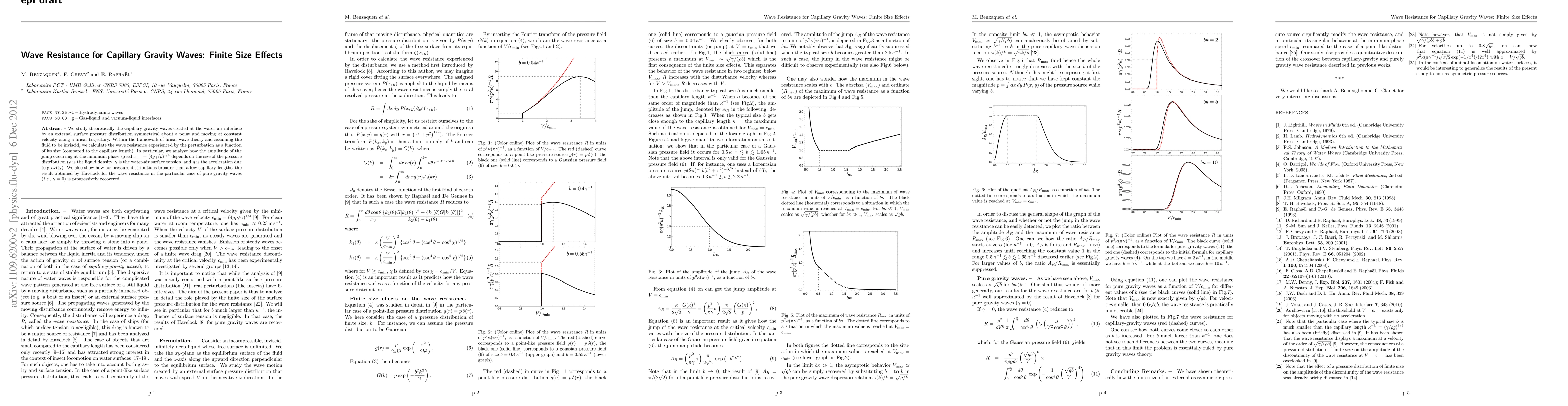 This paper theoretically investigates the wave resistance of capillary-gravity waves generated by a moving surface pressure distribution, analyzing how wave resistance varies with the size of the perturbation relative to the capillary length. It also examines the dependence of the amplitude of the phase speed jump at $c_{{\rm min}}$ on the pressure distribution size and shows the recovery of Havelock's result for gravity waves when the pressure distribution exceeds a few capillary lengths.
