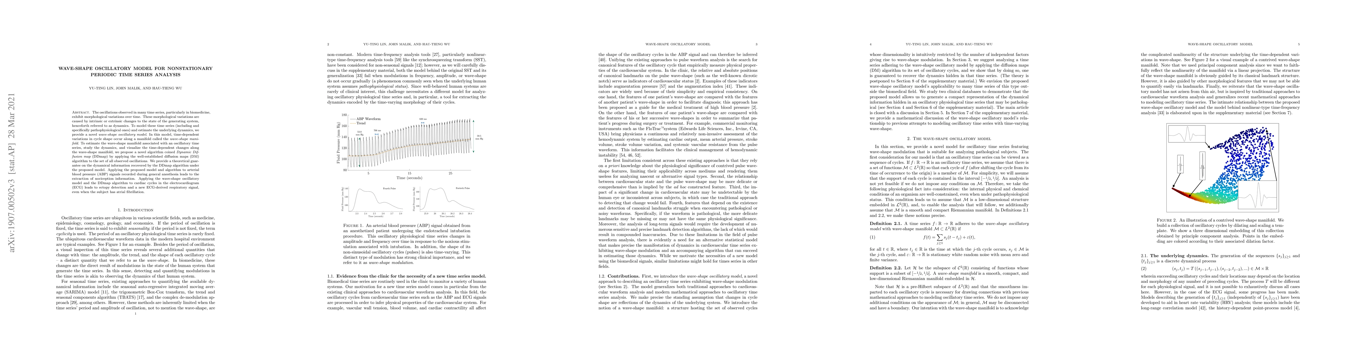 The oscillations observed in many time series, particularly in biomedicine, exhibit morphological variations over time. These morphological variations are caused by intrinsic or extrinsic changes to the state of the generating system, henceforth referred to as dynamics. To model these time series (including and specifically pathophysiological ones) and estimate the underlying dynamics, we provide a novel wave-shape oscillatory model. In this model, time-dependent variations in cycle shape occur along a manifold called the wave-shape manifold. To estimate the wave-shape manifold associated with an oscillatory time series, study the dynamics, and visualize the time-dependent changes along the wave-shape manifold, we propose a novel algorithm coined Dynamic Diffusion map (DDmap) by applying the well-established diffusion maps (DM) algorithm to the set of all observed oscillations. We provide a theoretical guarantee on the dynamical information recovered by the DDmap algorithm under the proposed model. Applying the proposed model and algorithm to arterial blood pressure (ABP) signals recorded during general anesthesia leads to the extraction of nociception information. Applying the wave-shape oscillatory model and the DDmap algorithm to cardiac cycles in the electrocardiogram (ECG) leads to ectopy detection and a new ECG-derived respiratory signal, even when the subject has atrial fibrillation.
