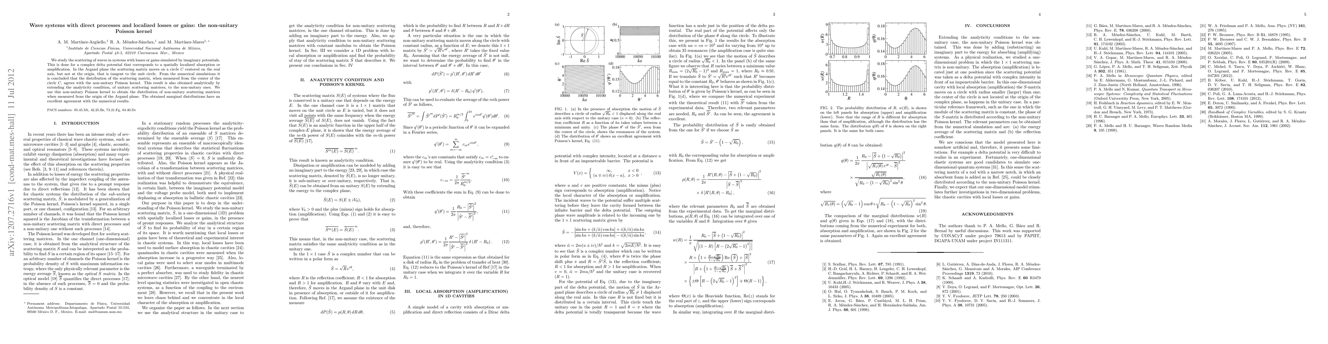This paper investigates wave scattering in systems with localized losses or gains, modeled by imaginary potentials. It finds that the distribution of the scattering matrix, measured from a non-origin center, aligns with the non-unitary Poisson kernel, confirmed both analytically and numerically.