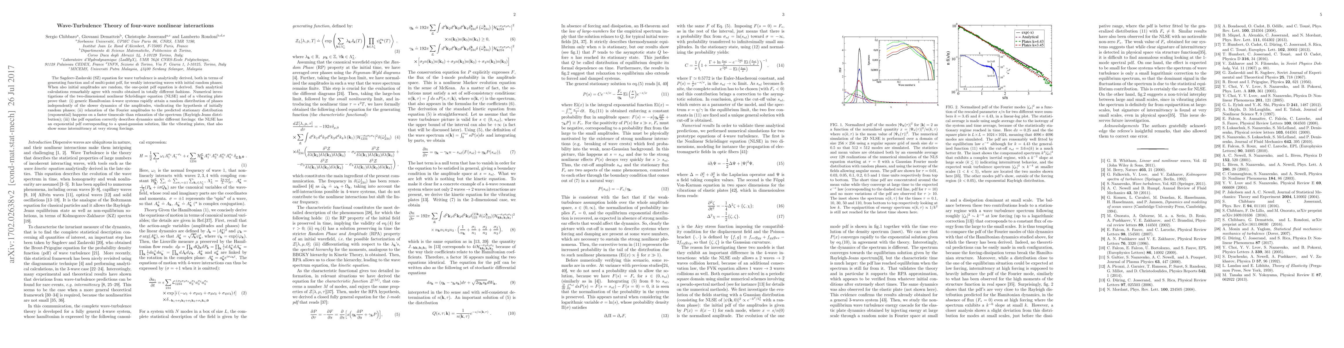 The paper analytically derives the Sagdeev-Zaslavski equation for wave turbulence, validating its hypothesis with numerical investigations of the 2D NLSE and vibrating plates. Key findings include rapid phase randomization in Hamiltonian 4-wave systems, faster Fourier amplitude relaxation to an exponential distribution than spectrum relaxation to Rayleigh-Jeans, and the pdf equation accurately describing dynamics under various forcings.