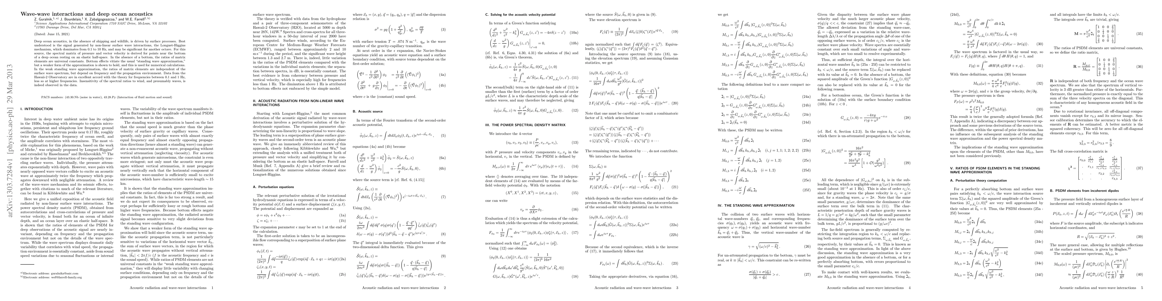 This paper investigates deep ocean acoustics driven by surface wave interactions, deriving the spectral matrix for pressure and velocity near the ocean bottom. It finds that while bottom effects complicate the standing wave approximation, a weaker form still holds, explaining observed acoustic data well at lower frequencies.