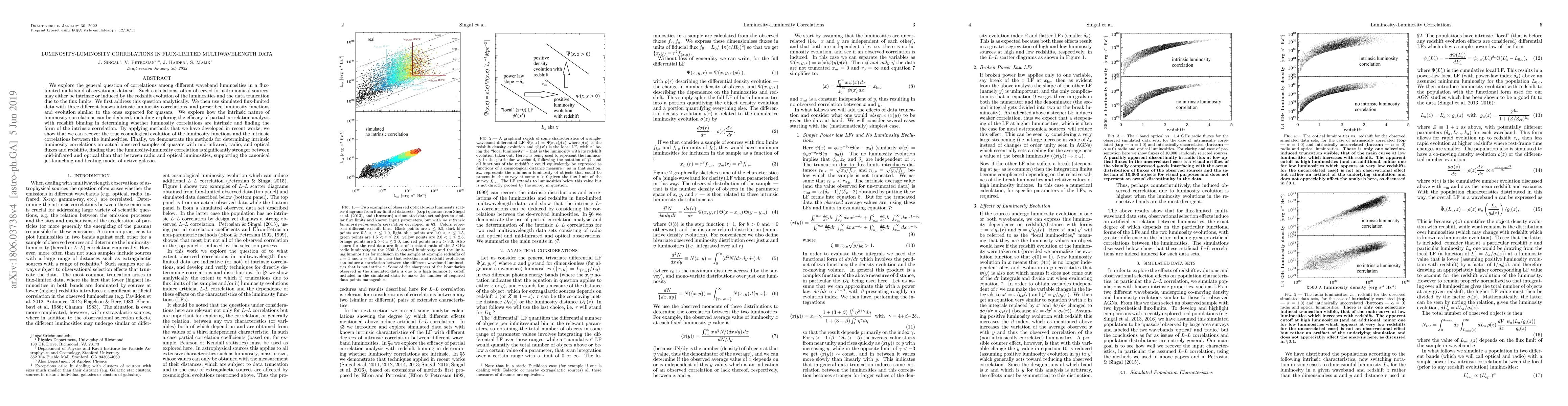 We explore the general question of correlations among different waveband luminosities in a flux-limited multiband observational data set. Such correlations, often observed for astronomical sources, may either be intrinsic or induced by the redshift evolution of the luminosities and the data truncation due to the flux limits. We first address this question analytically. We then use simulated flux-limited data with three different known intrinsic luminosity correlations, and prescribed luminosity functions and evolution similar to the ones expected for quasars. We explore how the intrinsic nature of luminosity correlations can be deduced, including exploring the efficacy of partial correlation analysis with redshift binning in determining whether luminosity correlations are intrinsic and finding the form of the intrinsic correlation. By applying methods that we have developed in recent works, we show that we can recover the true cosmological evolution of the luminosity functions and the intrinsic correlations between the luminosities. Finally, we demonstrate the methods for determining intrinsic luminosity correlations on actual observed samples of quasars with mid-infrared, radio, and optical fluxes and redshifts, finding that the luminosity-luminosity correlation is significantly stronger between mid-infrared and optical than that between radio and optical luminosities, supporting the canonical jet-launching and heating model of active galaxies.