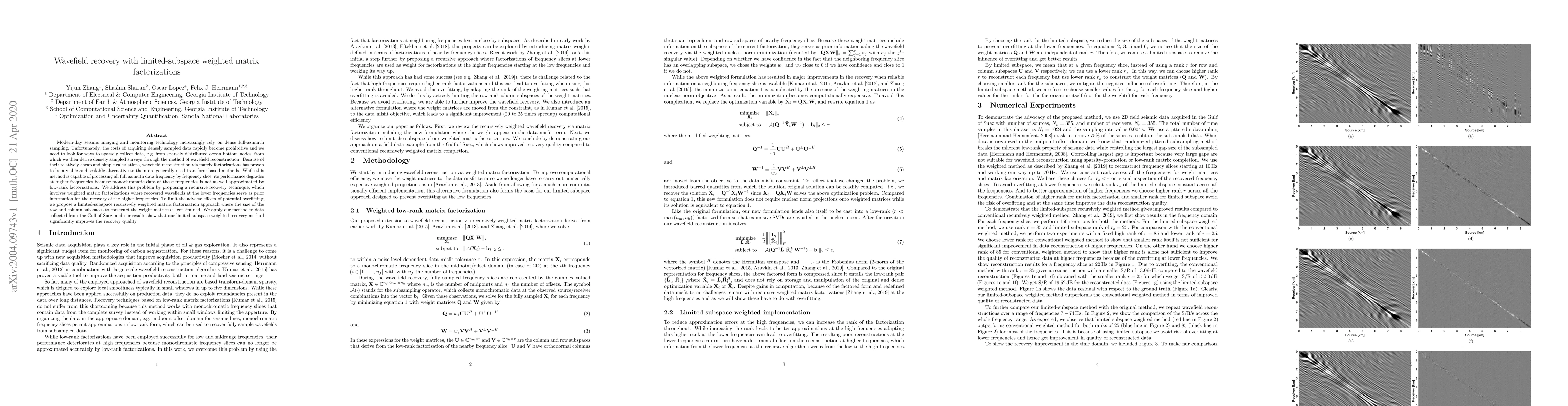 This paper proposes a limited-subspace weighted matrix factorization technique for wavefield recovery, addressing the degradation in reconstruction quality at higher frequencies. The method leverages prior information from lower frequencies and constrains the size of subspaces to mitigate overfitting, significantly improving the quality of wavefield reconstructions, as demonstrated with Gulf of Suez data.