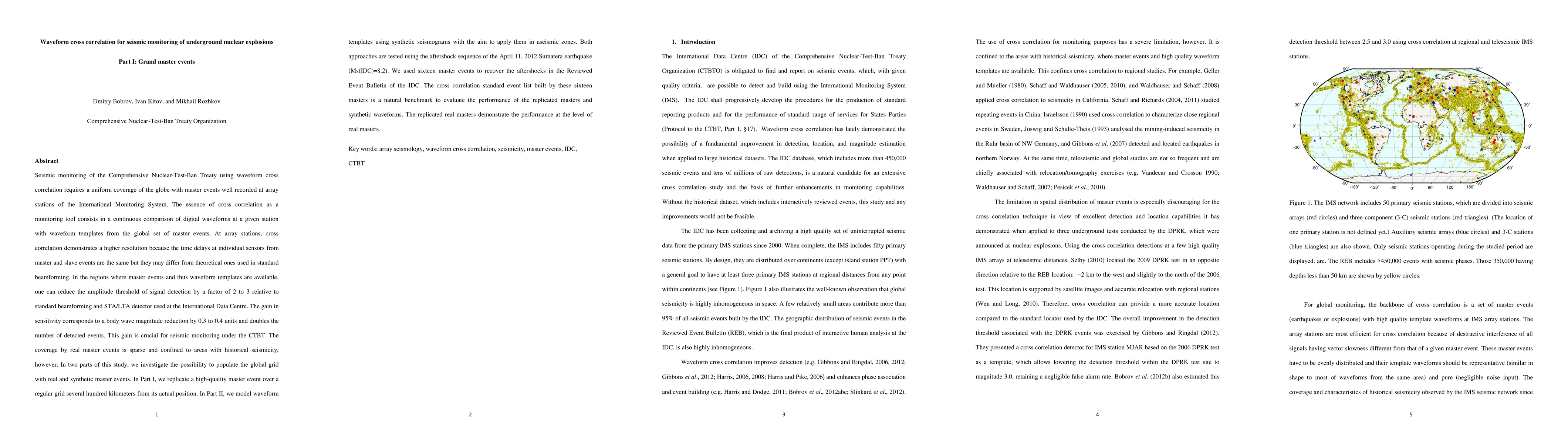 Researchers used waveform cross-correlation to improve seismic monitoring of underground nuclear explosions, detecting more events and increasing sensitivity, but faced challenges in populating the global grid with real master events.