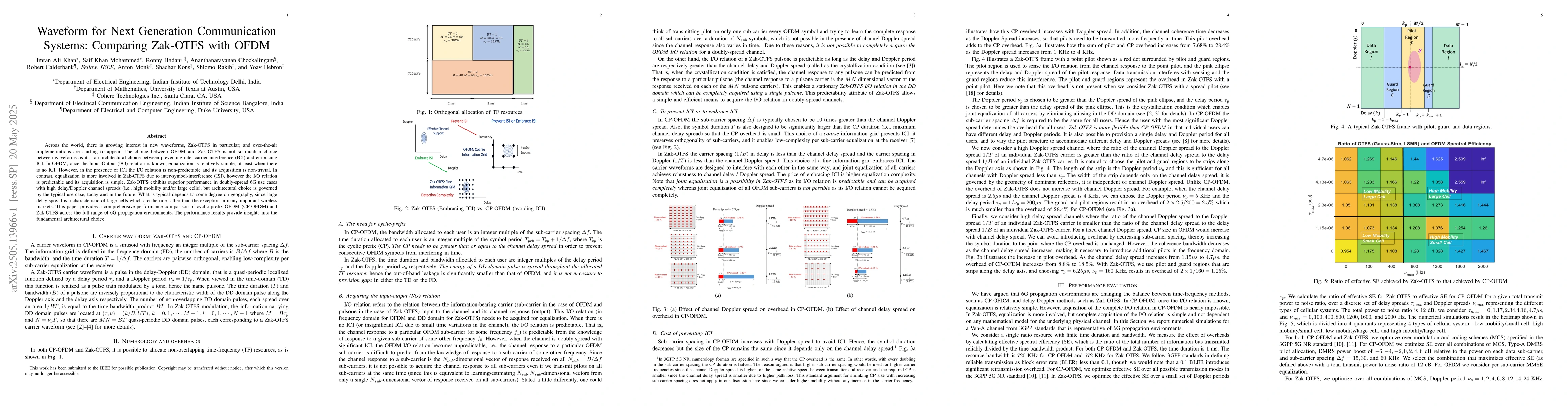 The paper provides a comprehensive performance comparison of cyclic prefix OFDM (CP-OFDM) and Zak-OTFS across the full range of 6G propagation environments.