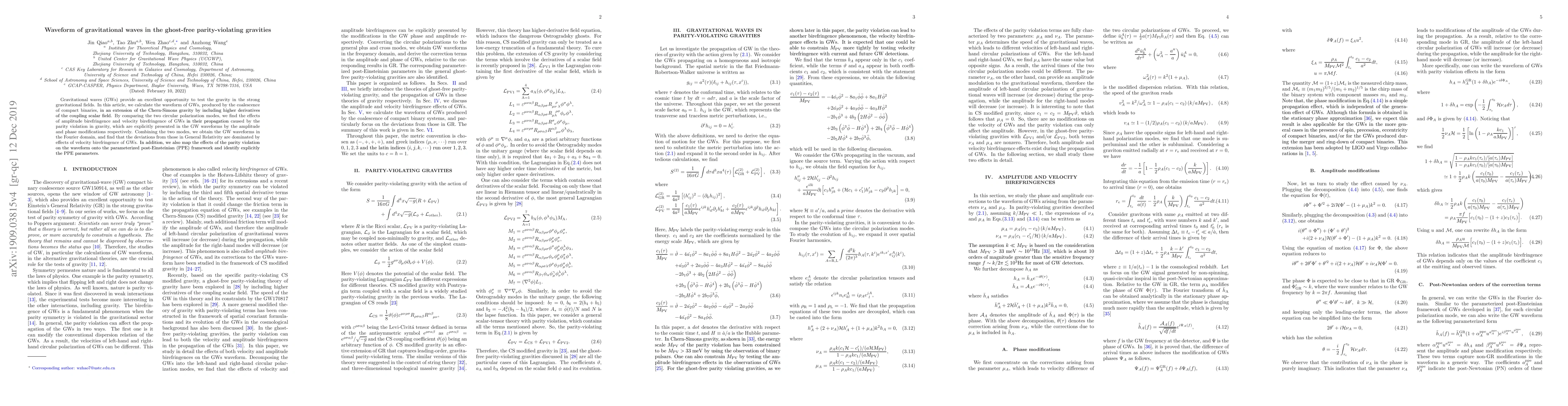 Researchers calculate the waveform of gravitational waves in a new theory that includes parity violation, finding effects on amplitude and velocity birefringence that deviate from General Relativity predictions.