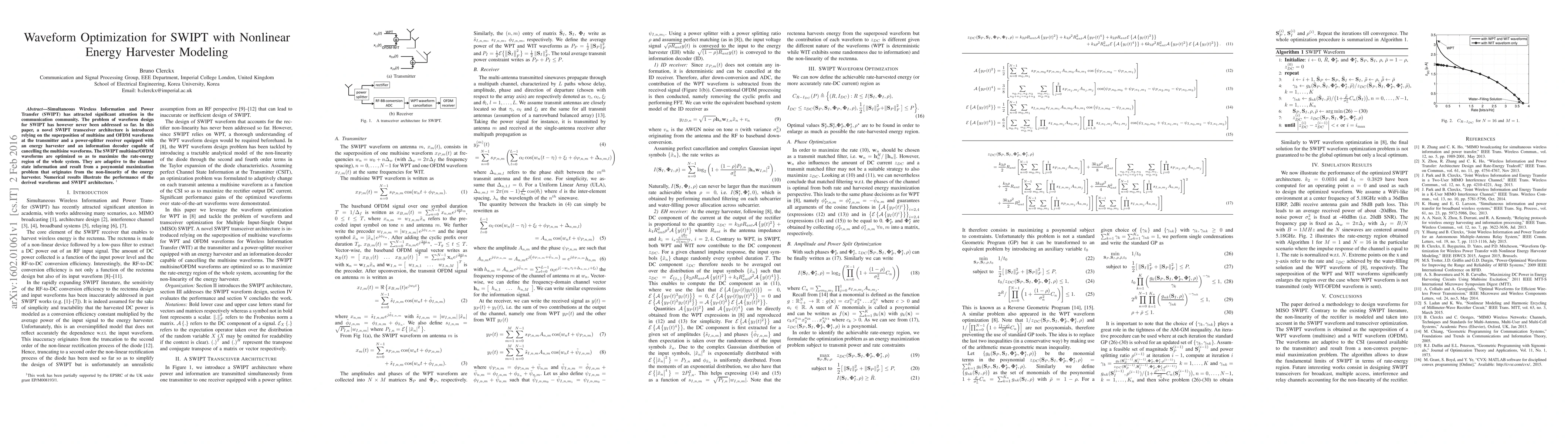 This paper introduces a novel SWIPT transceiver architecture that optimizes multisine and OFDM waveforms to maximize the rate-energy region, considering nonlinear energy harvesting. The proposed adaptive waveforms are derived from a posynomial maximization problem, and numerical results demonstrate their performance.