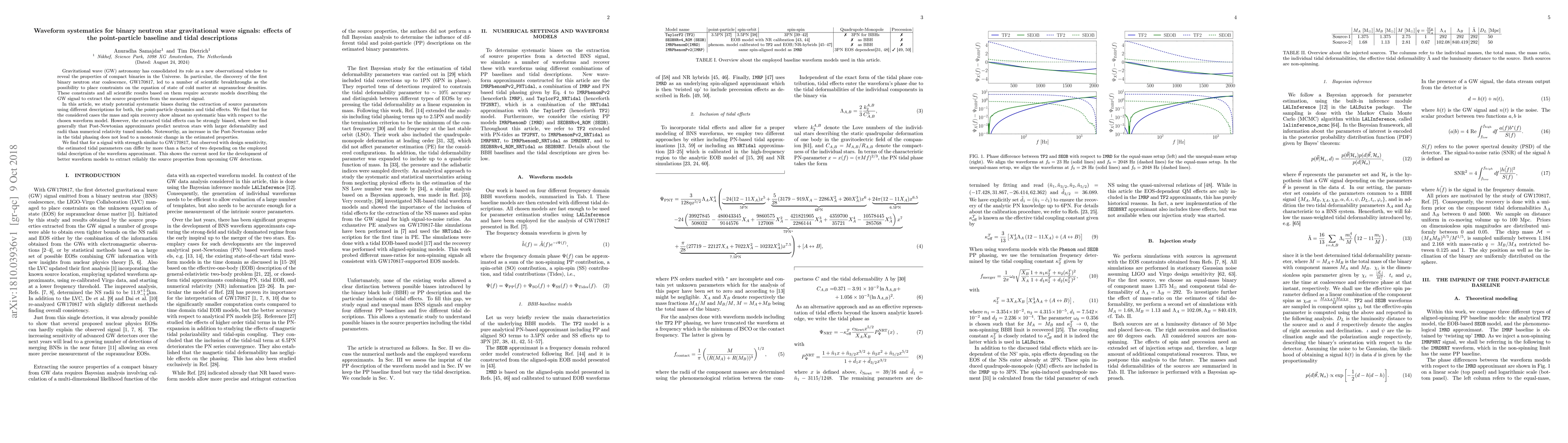 This paper investigates systematic biases in extracting source parameters from binary neutron star gravitational wave signals, focusing on the impact of different point-particle and tidal effect models. While mass and spin recovery show minimal bias, tidal effects can be significantly biased, with Post-Newtonian models predicting larger neutron star radii and deformability compared to numerical relativity models. The study highlights the need for improved waveform models to accurately extract source properties from future gravitational wave detections.