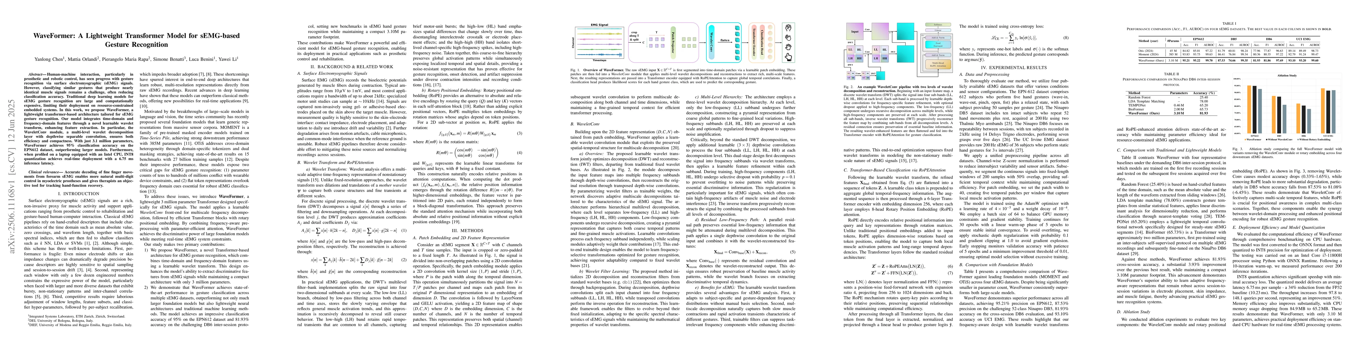 WaveFormer's integration of learnable wavelet transforms and RoPE-enhanced attention delivers state-of-the-art accuracy while maintaining parameter efficiency, suitable for resource-constrained sEMG applications.