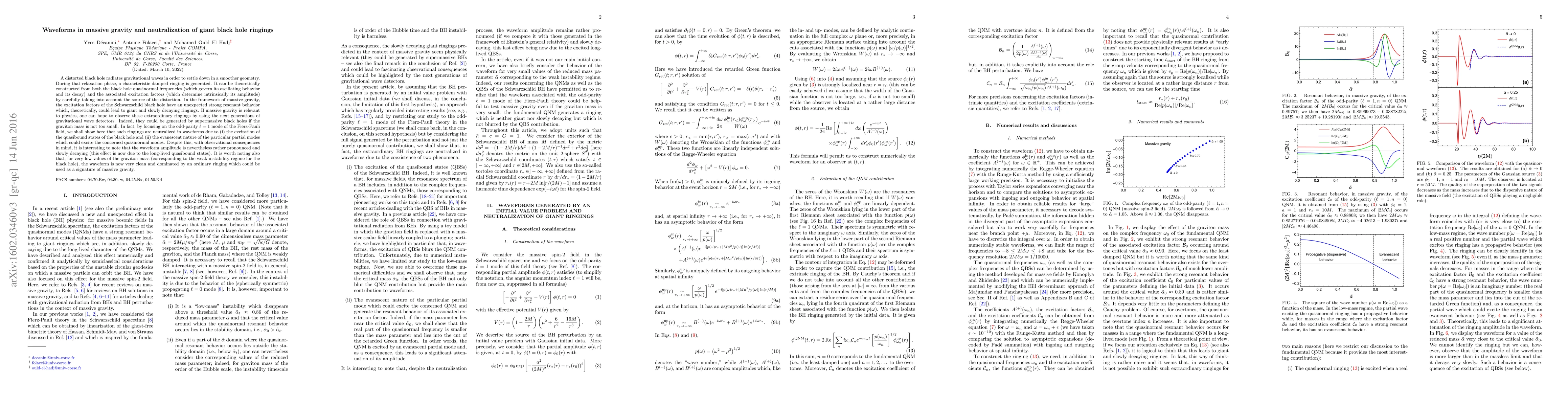 A distorted black hole radiates gravitational waves in order to settle down in a smoother geometry. During that relaxation phase, a characteristic damped ringing is generated. It can be theoretically constructed from both the black hole quasinormal frequencies (which govern its oscillating behavior and its decay) and the associated excitation factors (which determine intrinsically its amplitude) by carefully taking into account the source of the distortion. In the framework of massive gravity, the excitation factors of the Schwarzschild black hole have an unexpected strong resonant behavior which, theoretically, could lead to giant and slowly decaying ringings. If massive gravity is relevant to physics, one can hope to observe these extraordinary ringings by using the next generations of gravitational wave detectors. Indeed, they could be generated by supermassive black holes if the graviton mass is not too small. In fact, by focusing on the odd-parity $\ell=1$ mode of the Fierz-Pauli field, we shall show here that such ringings are neutralized in waveforms due to (i) the excitation of the quasibound states of the black hole and (ii) the evanescent nature of the particular partial modes which could excite the concerned quasinormal modes. Despite this, with observational consequences in mind, it is interesting to note that the waveform amplitude is nevertheless rather pronounced and slowly decaying (this effect is now due to the long-lived quasibound states). It is worth noting also that, for very low values of the graviton mass (corresponding to the weak instability regime for the black hole), the waveform is now very clean and dominated by an ordinary ringing which could be used as a signature of massive gravity.