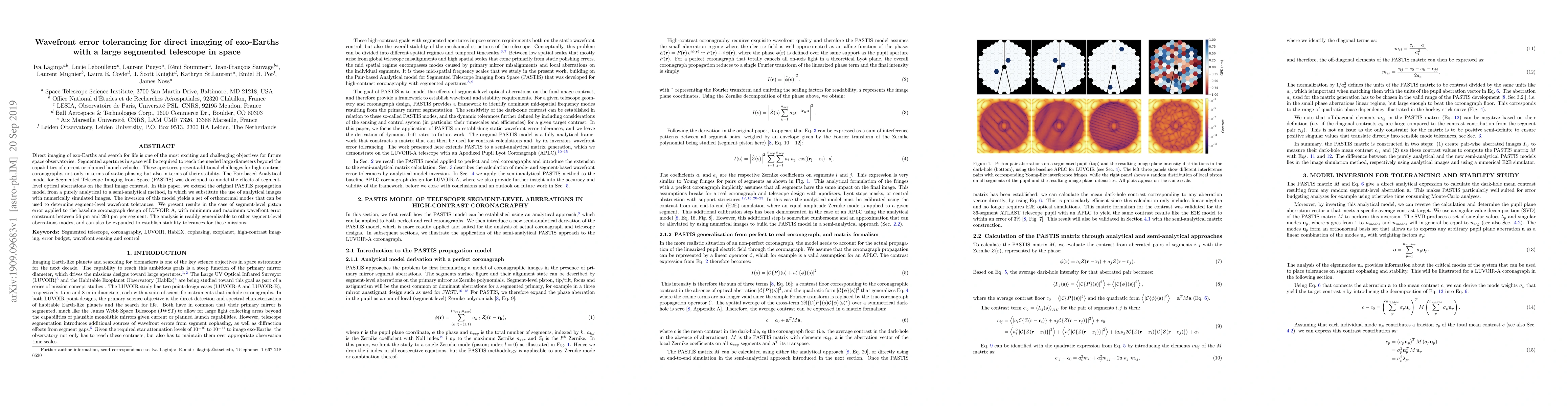 This paper develops a semi-analytical method for determining wavefront error tolerances in large segmented telescopes for direct imaging of exo-Earths, using the PASTIS model. The study presents segment-level piston error tolerances for LUVOIR A's coronagraph design, ranging from 56 pm to 290 pm per segment, and suggests the approach can be extended to other aberration modes and stability tolerances.