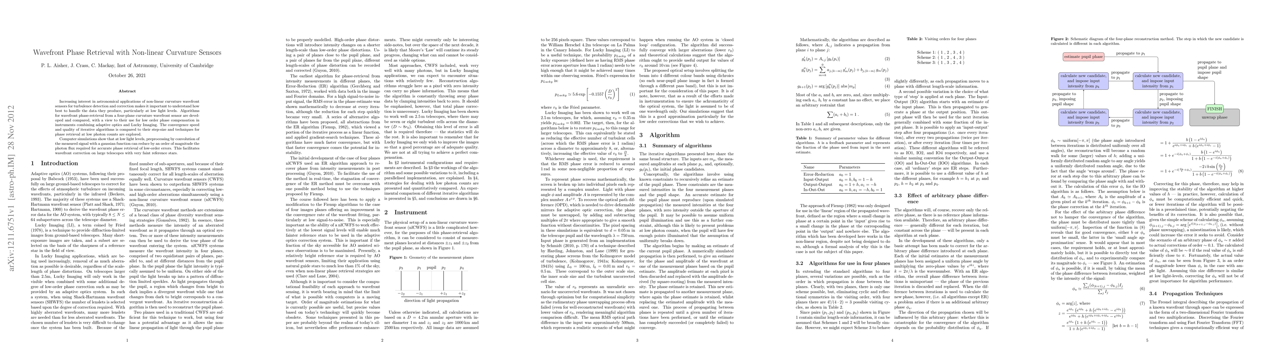 This paper develops and compares algorithms for wavefront phase retrieval using non-linear curvature sensors, focusing on low light levels. It finds that preprocessing with Gaussian convolution can significantly reduce required photon flux for accurate phase retrieval, aiding wavefront correction in faint star conditions.