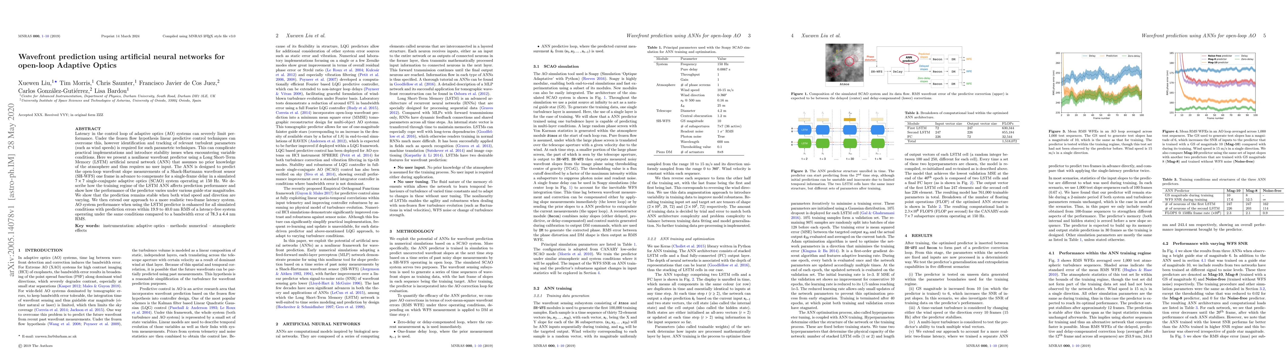 This paper proposes a Long Short-Term Memory (LSTM) artificial neural network to predict wavefront slopes in open-loop adaptive optics systems, eliminating the need for tracking atmospheric parameters. The LSTM model effectively compensates for latency in a simulated single-conjugate adaptive optics system, enhancing performance under varying conditions.