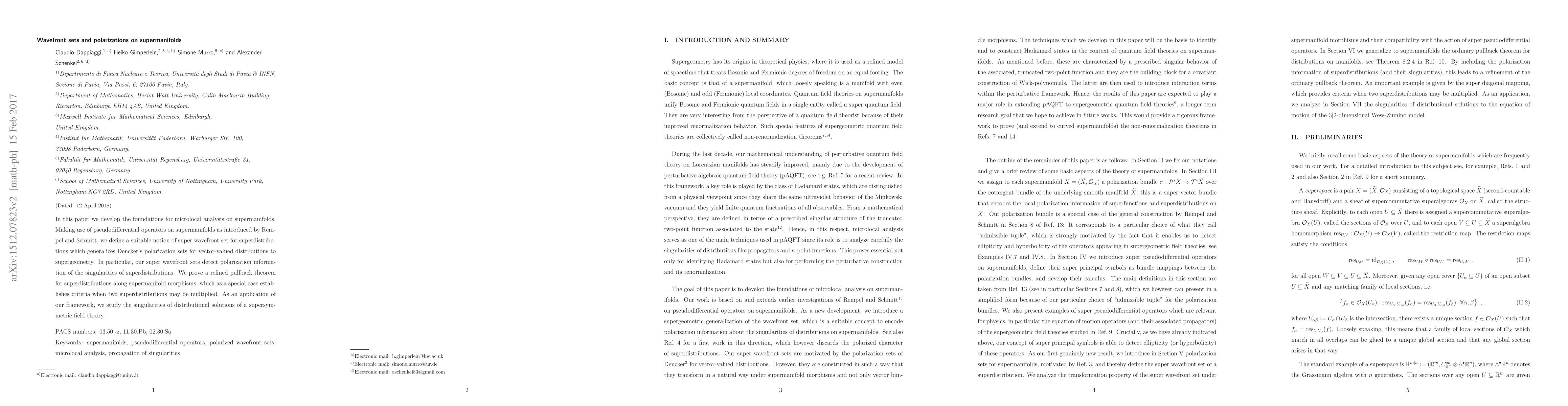 This paper establishes microlocal analysis foundations on supermanifolds, defining super wavefront sets for superdistributions that generalize polarization sets. It proves a refined pullback theorem and applies the framework to study singularities in supersymmetric field theories.
