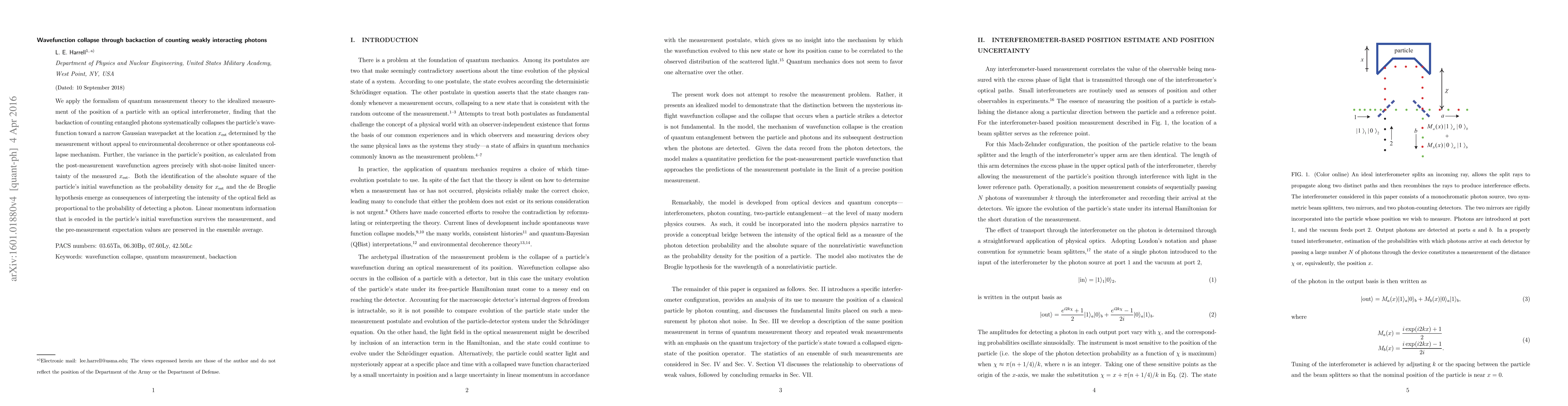 We apply the formalism of quantum measurement theory to the idealized measurement of the position of a particle with an optical interferometer, finding that the backaction of counting entangled photons systematically collapses the particle's wavefunction toward a narrow Gaussian wavepacket at the location $x_\mathrm{est}$ determined by the measurement without appeal to environmental decoherence or other spontaneous collapse mechanism. Further, the variance in the particle's position, as calculated from the post-measurement wavefunction agrees precisely with shot-noise limited uncertainty of the measured $x_\mathrm{est}$. Both the identification of the absolute square of the particle's initial wavefunction as the probability density for $x_\mathrm{est}$ and the de Broglie hypothesis emerge as consequences of interpreting the intensity of the optical field as proportional to the probability of detecting a photon. Linear momentum information that is encoded in the particle's initial wavefunction survives the measurement, and the pre-measurement expectation values are preserved in the ensemble average.