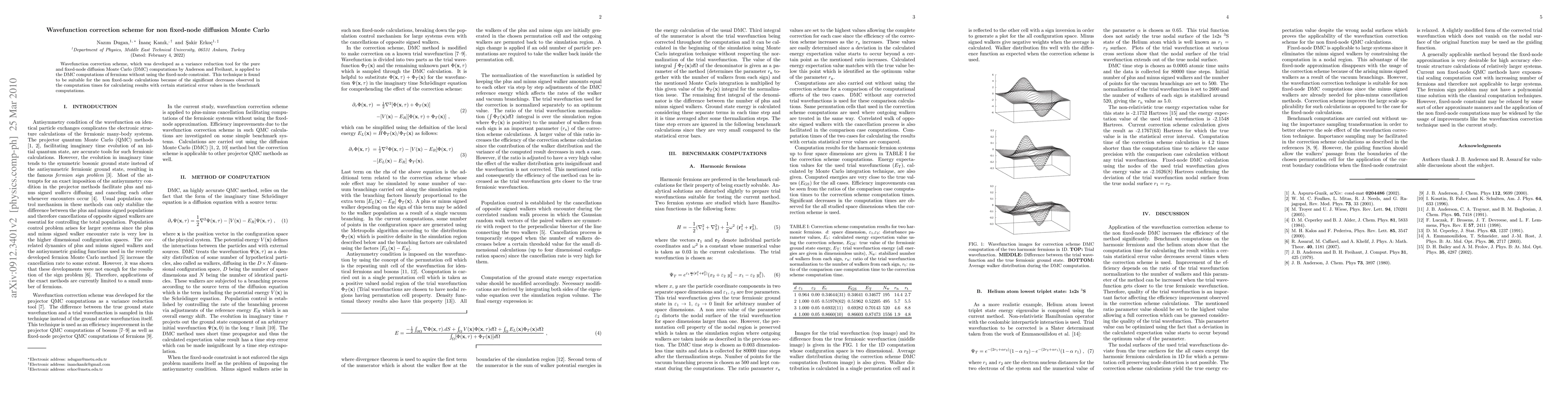This paper introduces a wavefunction correction scheme to non fixed-node diffusion Monte Carlo (DMC) computations, originally developed for fixed-node DMC, showing significant reductions in computation times while maintaining acceptable statistical error levels.