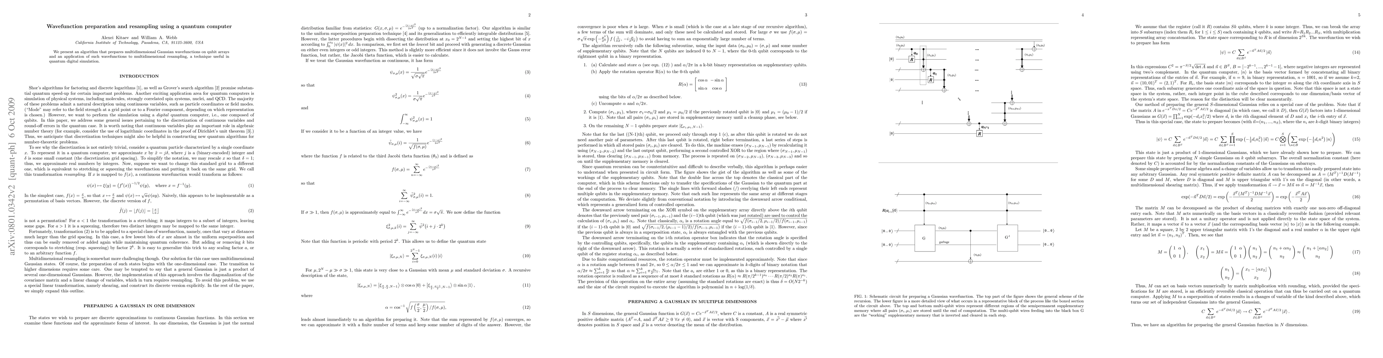 Summary: This paper introduces an algorithm for preparing multidimensional Gaussian wavefunctions on qubit arrays and demonstrates its application in multidimensional resampling, enhancing quantum digital simulation techniques.