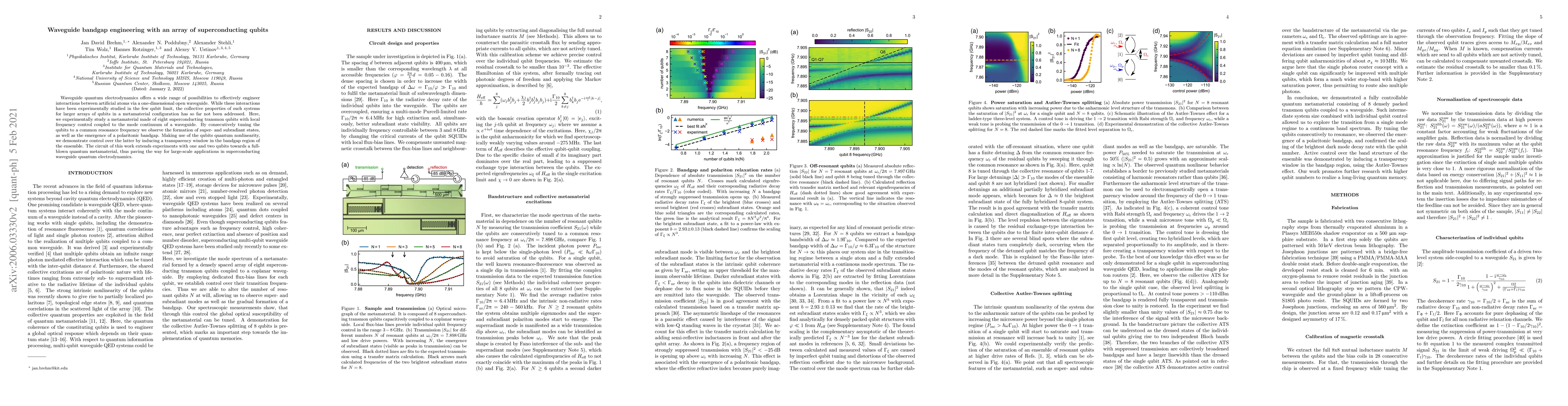 This paper investigates the engineering of waveguide bandgaps using an array of superconducting qubits in a metamaterial configuration, demonstrating the formation of super- and subradiant states and a polaritonic bandgap, and showing control over the bandgap through qubit quantum nonlinearity. This extends previous experiments to larger qubit arrays, advancing quantum metamaterial applications.