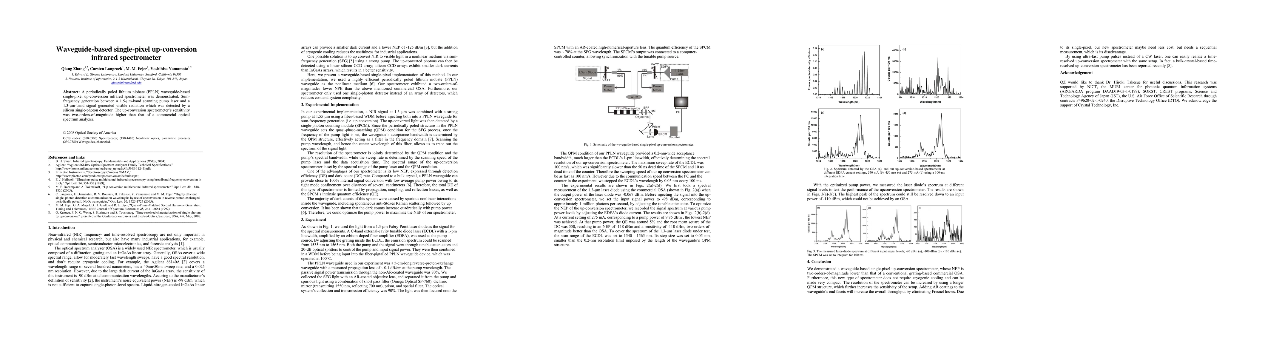 This research demonstrates a waveguide-based single-pixel up-conversion infrared spectrometer using a periodically poled lithium niobate waveguide, achieving significantly lower noise equivalent power compared to commercial optical spectrum analyzers.